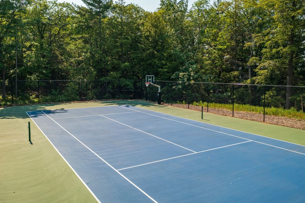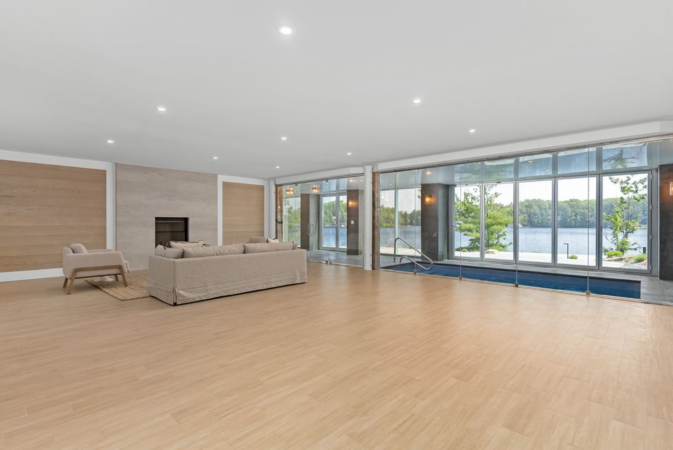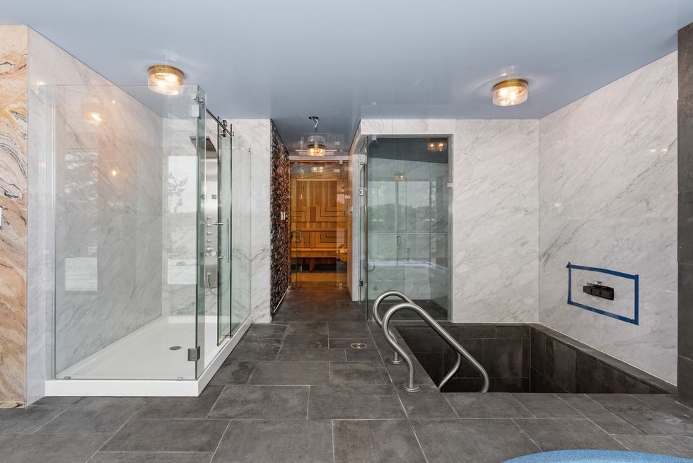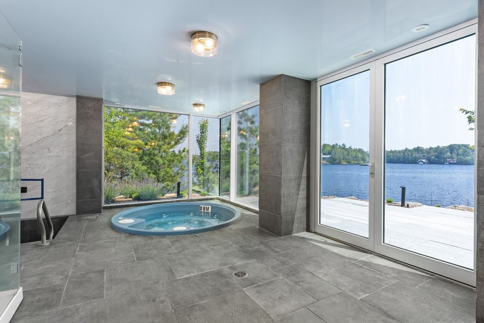 What really sets this property apart is the sheer number of top-tier creature comforts it offers residents and guests. On the home's lower level you'll find a jetted workout pool, hot tub, cold plunge, cedar sauna, steam room, and massage shower. Plus, there's no shortage of activities, with walking trails, a tennis court, and a three-slip boathouse for launching a day of water sports.