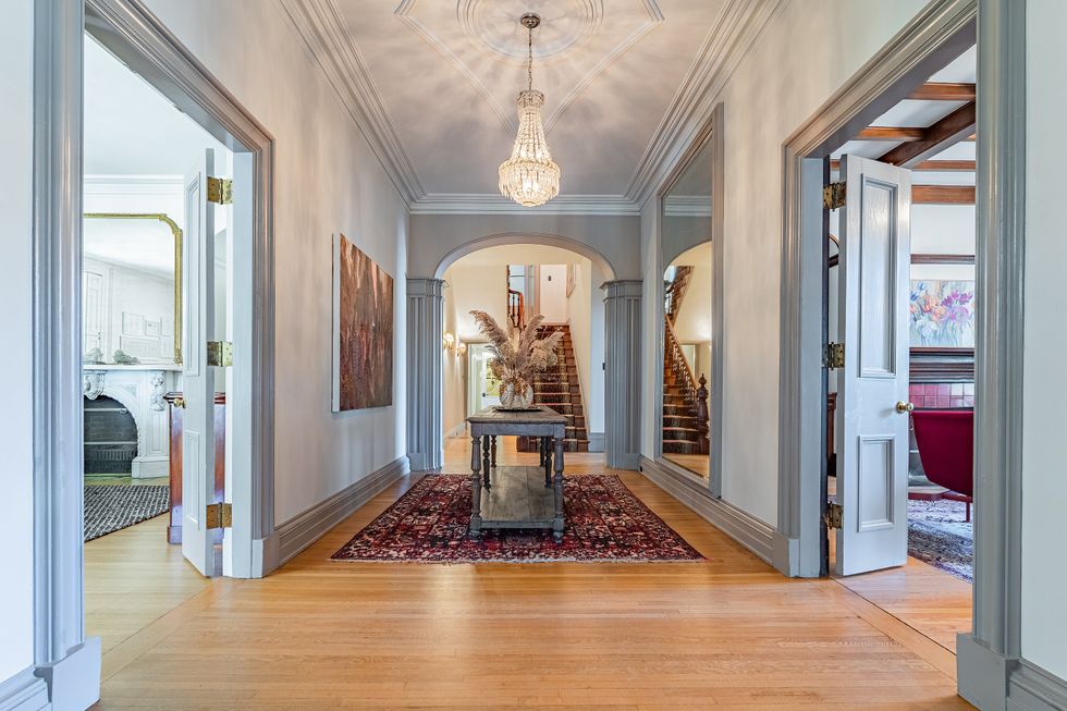 Perched above the community of Dundas on the western edge of Lake Ontario, the property enjoys stunning vistas of the Dundas Valley, the Escarpment wall, Hamilton Bay, Lake Ontario, and the Skyway Bridge. And the beauty continues inside the residence, where Victorian-era architecture blends seamlessly with contemporary upgrades and designs.
