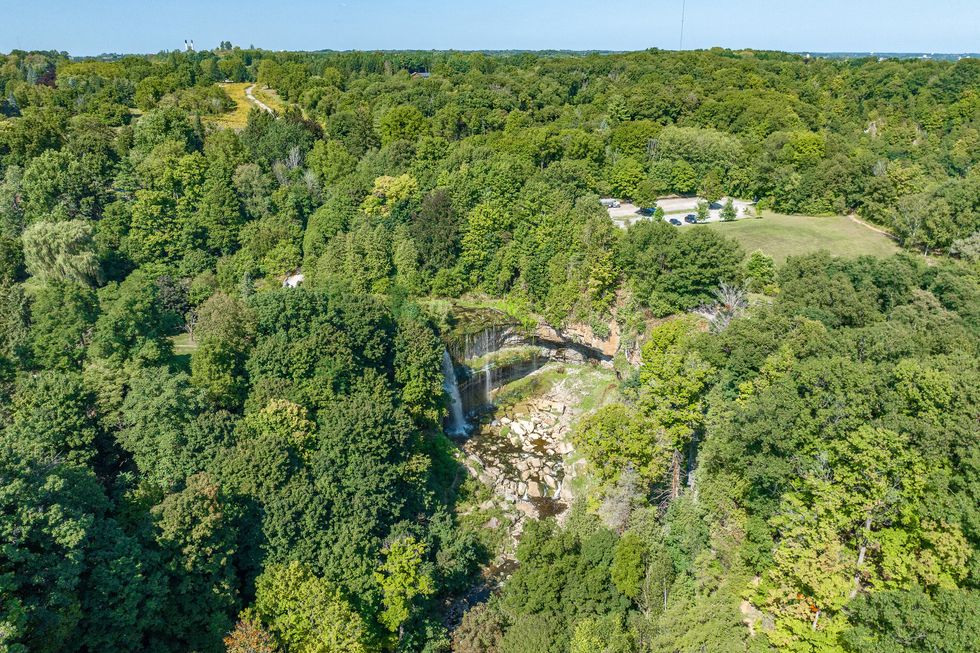 Just off Highway 8, you'll find an entrance with a stone wall-flanked gateway. As you drive along the winding road, you'll quickly become enamoured as a meandering stream and the stunning expanses of Dundas Valley come into view. Approaching the home, the "zen garden" and other blooming flowers create an idyllic framing around the main home, which itself catches the eye with its charming exterior defined by Victorian-era architecture.
