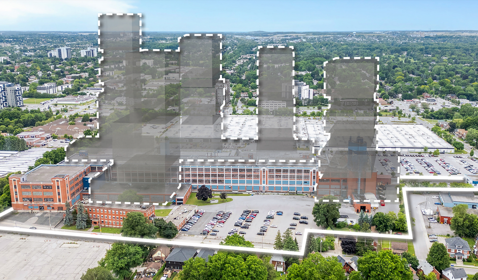 The 14.5-acre lot and existing buildings is being listed by TD Cornerstone Commercial Realty Inc. for an undisclosed price and offers a number of attractive features, one being an unlimited floor space index (FSI). Located in a Major Transit Station Area (MTSA) of the City of Kitchener’s Growing Together Plan, the site, which is one of the largest urban infill sites in Kitchener-Waterloo, is intended for a high-density intensification, meaning developers will benefit from no maximum building height, density restrictions, or parking minimum.
