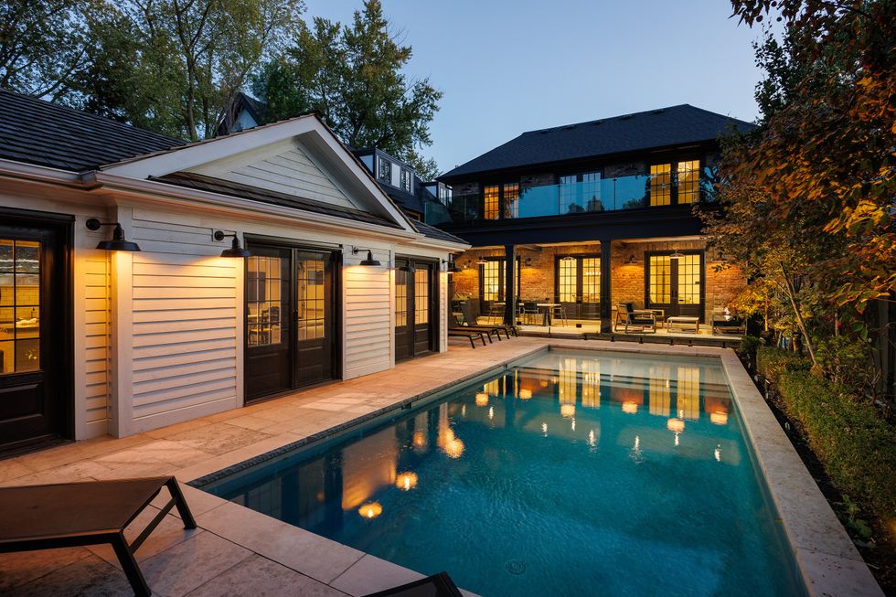 Back outside, the estate’s resort-like backyard completes the offering. A shimmering pool, spacious covered porch, and professionally landscaped grounds set the stage for unforgettable summer soirées — or quiet moments of solitude. Meanwhile, the sprawling lower level offers the flexibility to create a home theatre, games room, or additional entertaining hub, depending on your vice of choice.