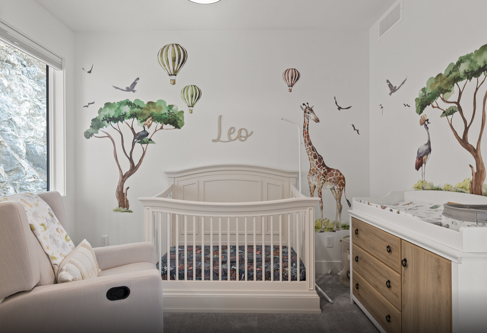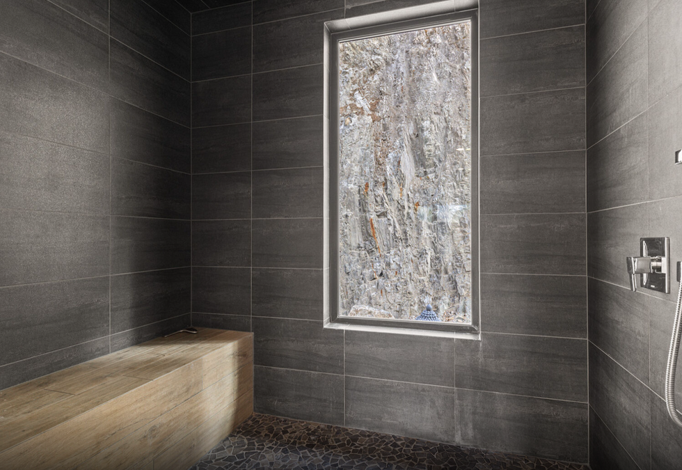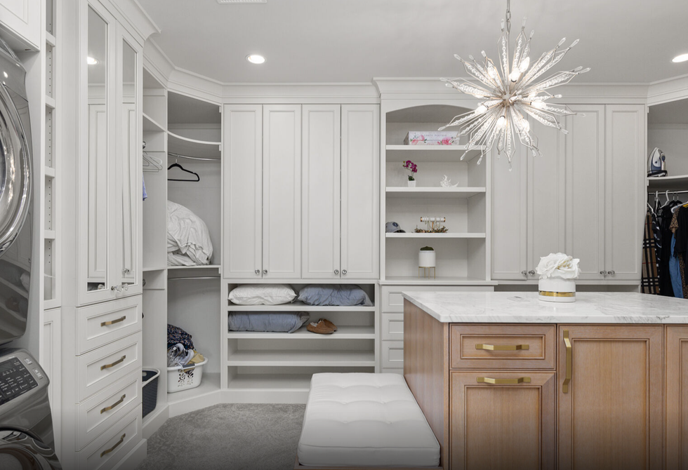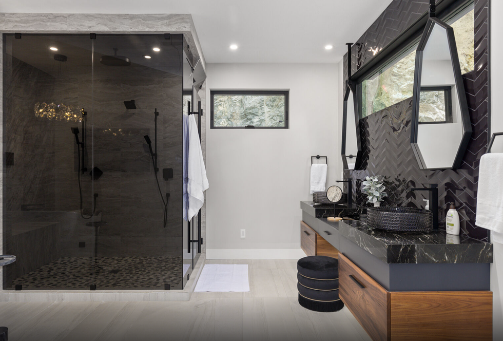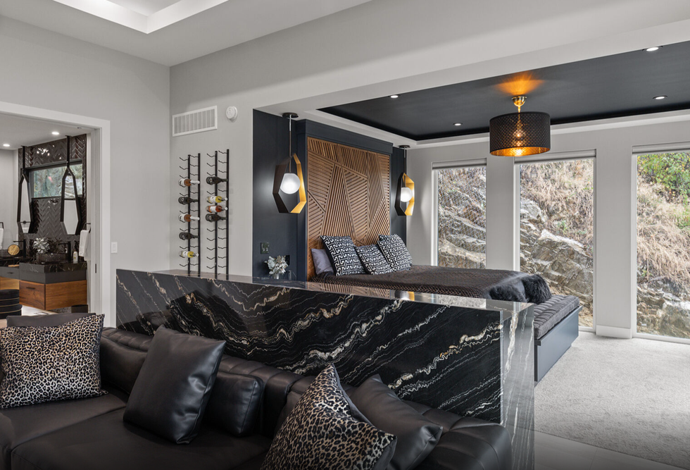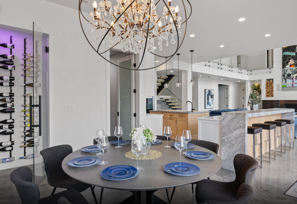 The home features not just one but two primary bedrooms, each of which are equipped with custom closets and spa-inspired ensuite baths. One of the two even includes a chic wet bar and a walk-in closet that doubles as a safe-room, which was overbuilt with a metal locking door.