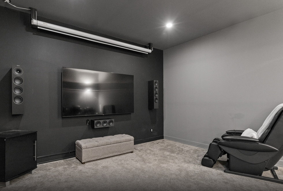 Just next to the kitchen waits the cozy dining room, a walk-in pantry, and a walk-in wine room. The home also includes a 13' x 13' office, an exercise room, and a state-of-the-art screening room. What's more, the abode is equipped with an oversized three-car garage, which provides an abundance of space — and is heated, to boot.