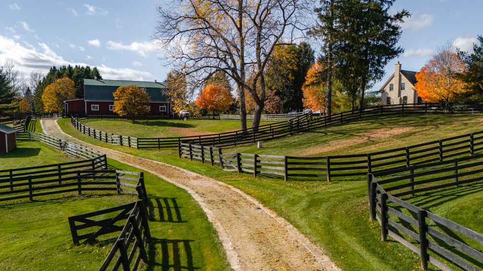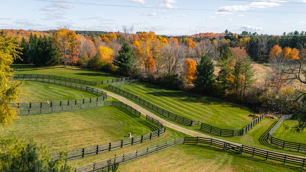 Equestrian enthusiasts will be enthralled by the stables, complete with 12 stalls, paddocks, and an outdoor riding ring. There are also several trails on site, winding through meadows and forest, setting the perfect backdrop for long afternoons spent enjoying the outdoors.