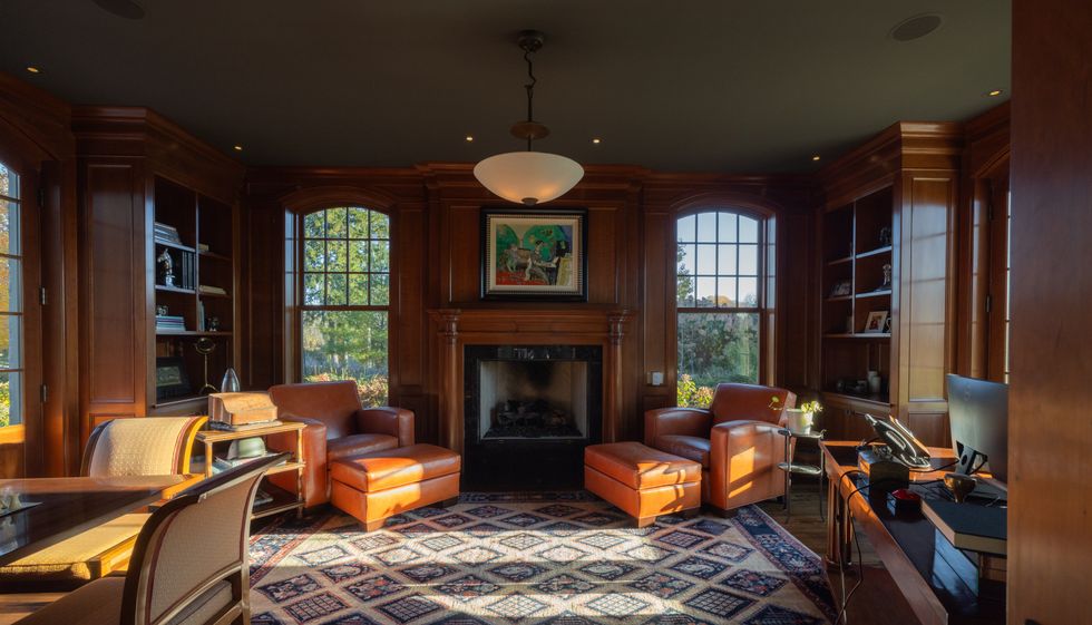 Anchoring the abode is a chef’s kitchen, complete with state-of-the-art appliances and an adjoining formal dining room, perfect for large-scale gatherings. Throughout the interiors, thoughtful touches — multiple wood-burning fireplaces, exquisite millwork, and the soft glow of that aforementioned sunlight — weave a narrative of comfort blended with sophistication.