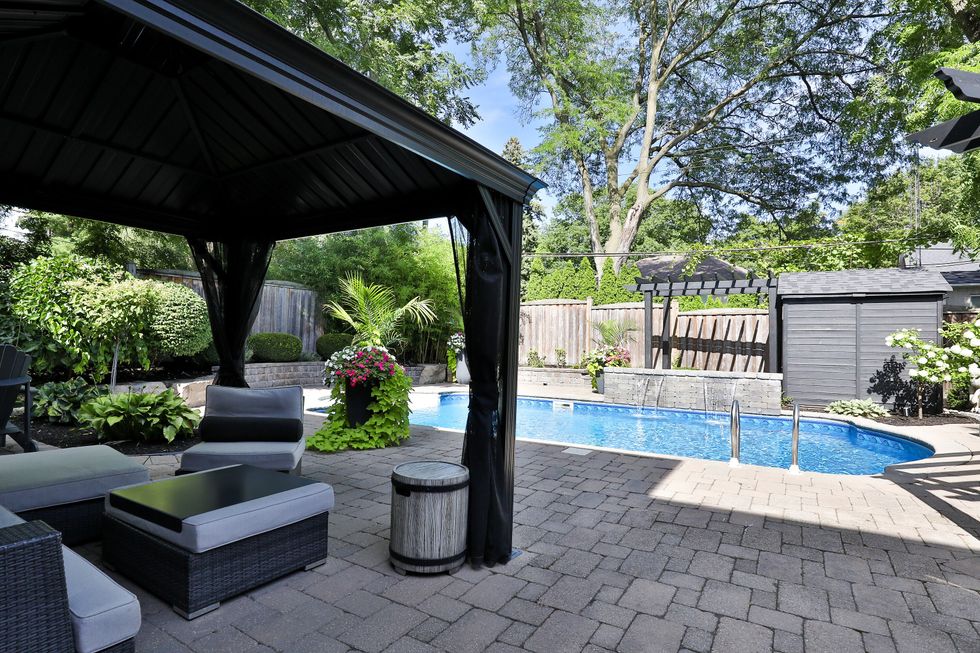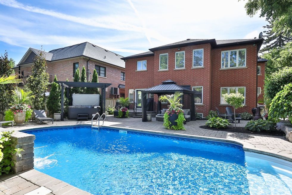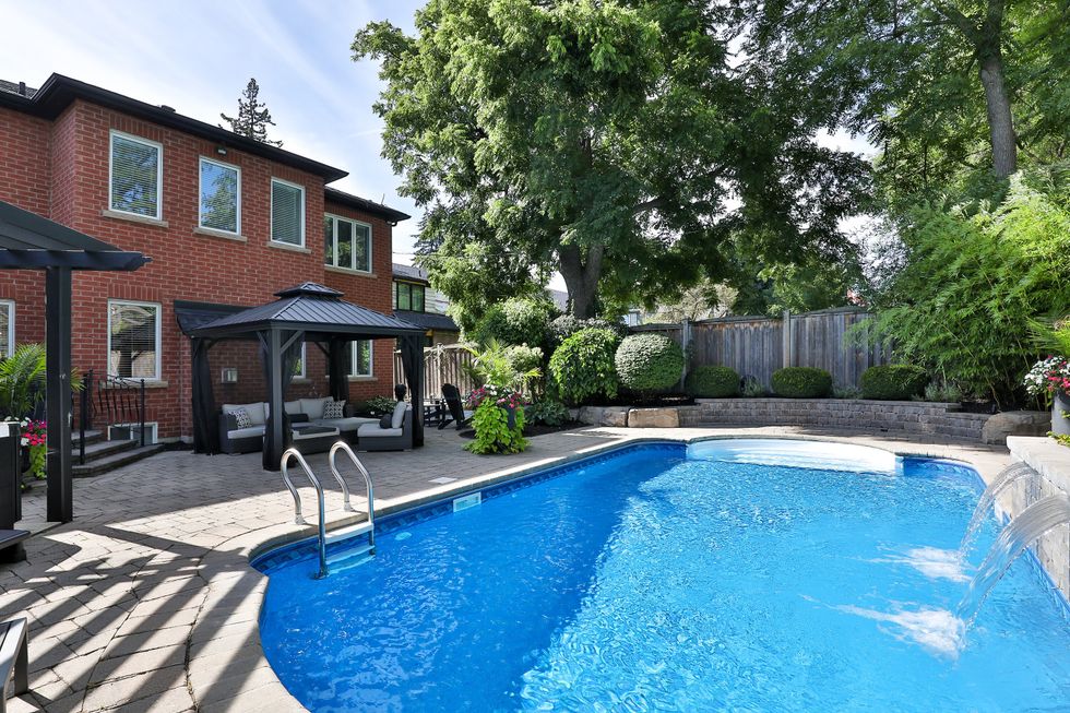 The backyard oasis elevates this property beyond the ordinary. With a saltwater pool, hot tub, waterfall feature, and multiple entertaining areas, it feels like a private resort — all without leaving Toronto.