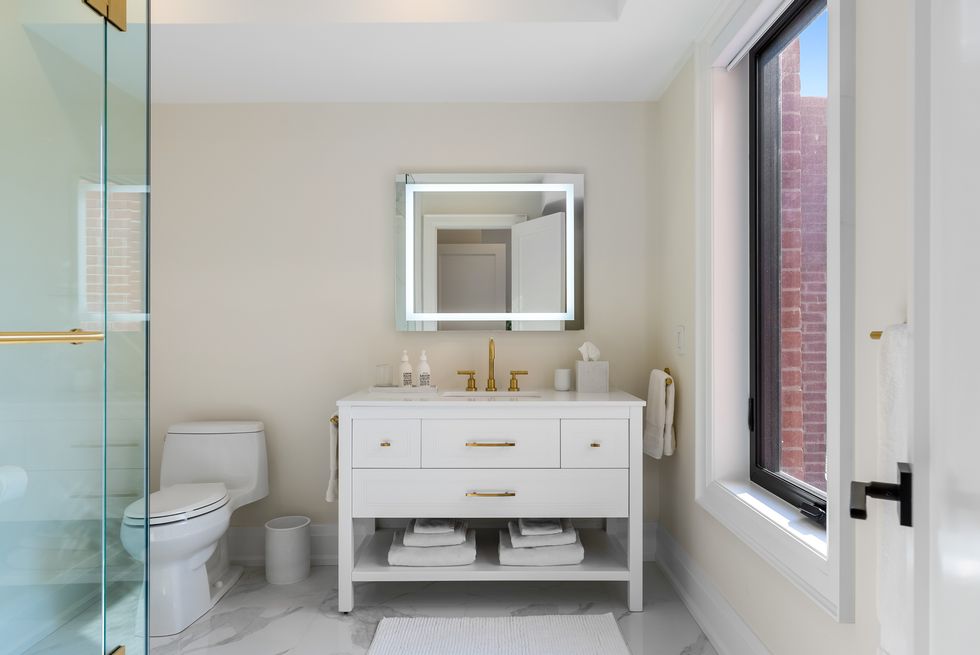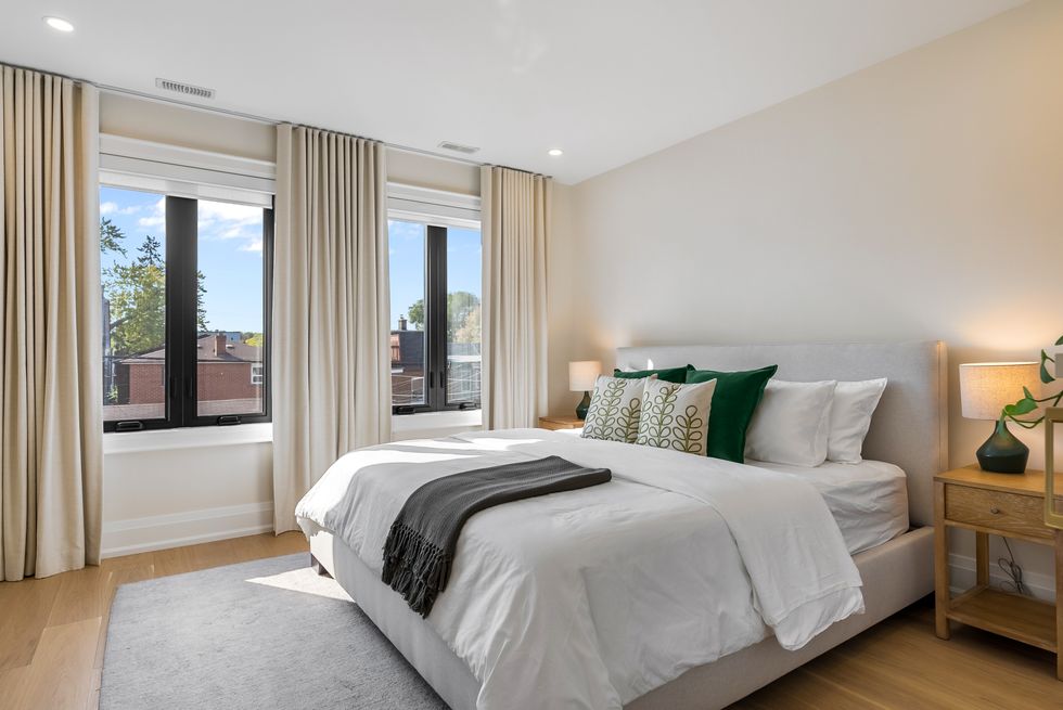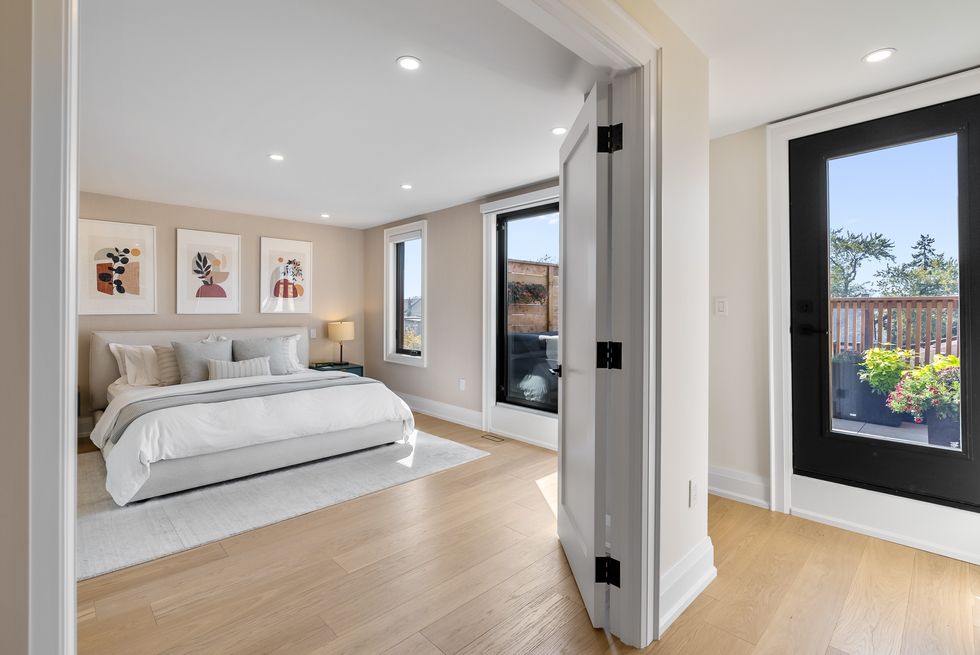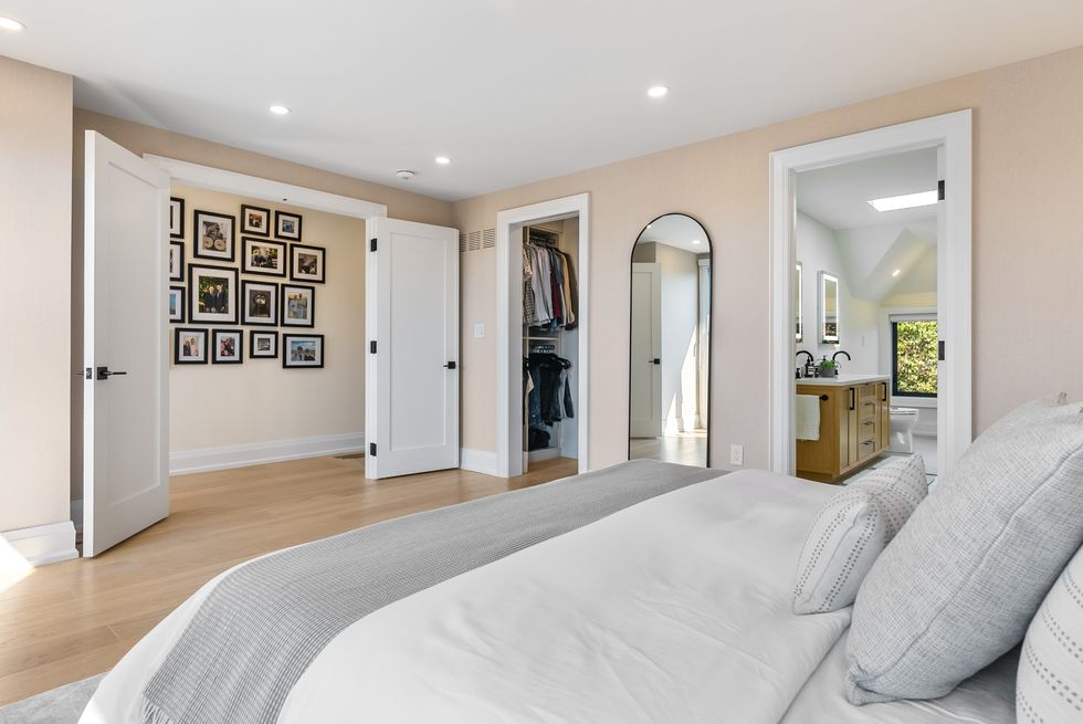 Up on the second floor you'll find three generously-sized bedrooms, including the 'secondary' of two primary suites, complete with a spa-like ensuite and custom California Closets.