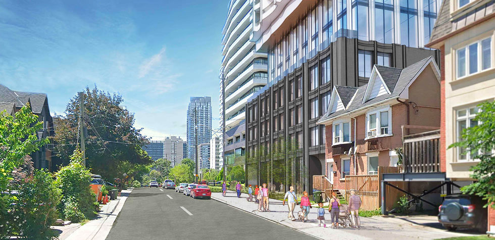 In addition to being a seven-minute walk from the TTC's Eglinton Station, the 0.35-acre lot at 148 and 158 Soudan Avenue is around the corner from the future Mount Pleasant Station on the Eglinton Crosstown LRT, which is scheduled to open this year. The planning report describes the site as an “urban parcel” surrounded by existing and approved higher-density buildings, including 59- and 55-storey residential towers from Menkes recently approved for 55-75 Brownlow Avenue.