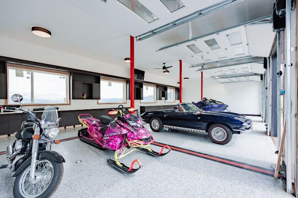 And even all that isn't all. Also on site is a standalone carriage house equipped with an elevator, a hot tub, two saunas, and a four-space vehicle barn with showroom-like windows, while a three-car garage is built into the main home.