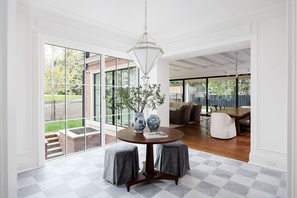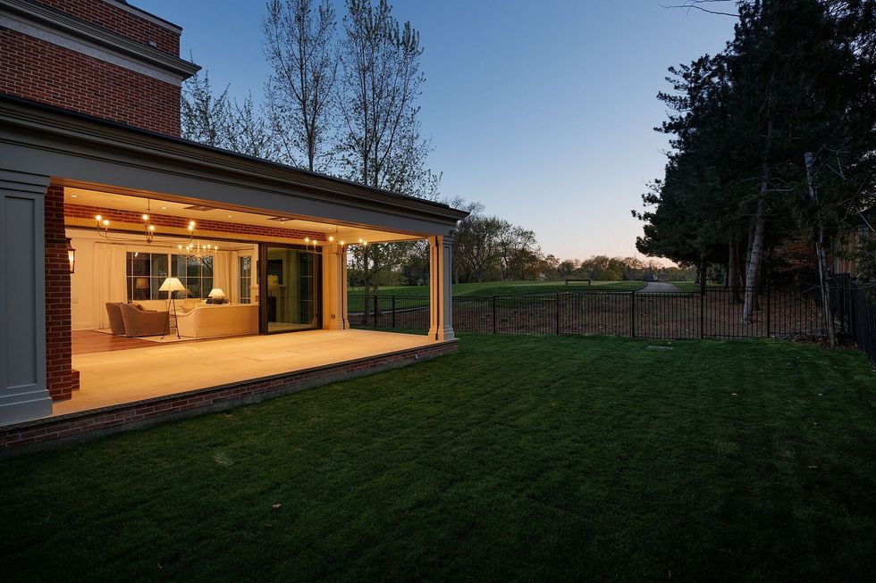 Designed by New Age Design Architects and brought to life by Easton Homes, the estate commands a rare pie-shaped lot on a quiet cul-de-sac. From the street, its stately red brick and Indiana limestone exterior evoke a sense of old-world permanence. But step inside, and the experience becomes entirely of the moment.