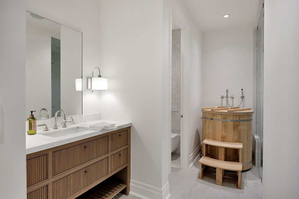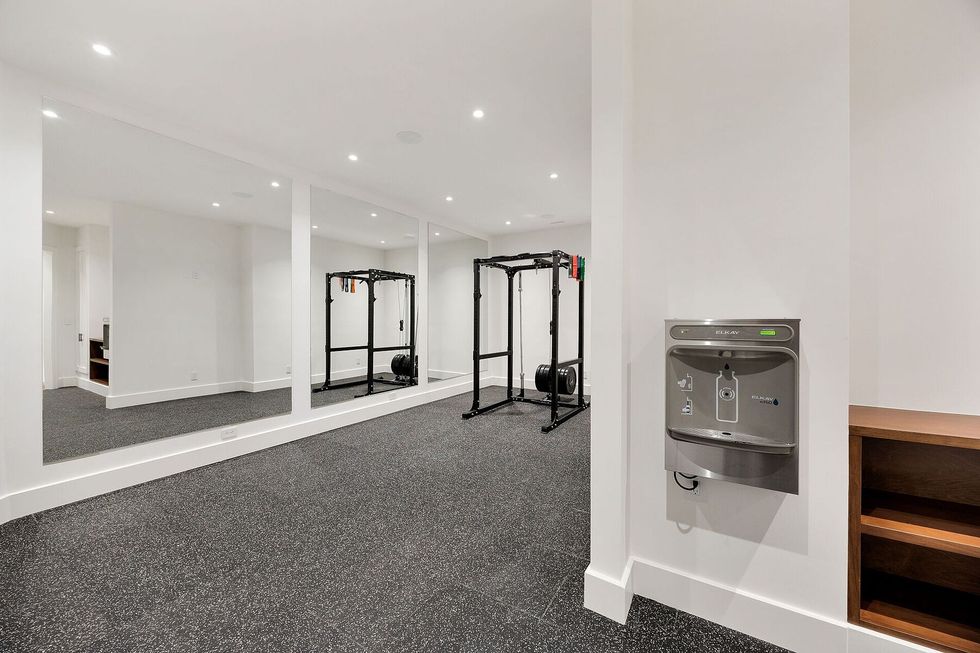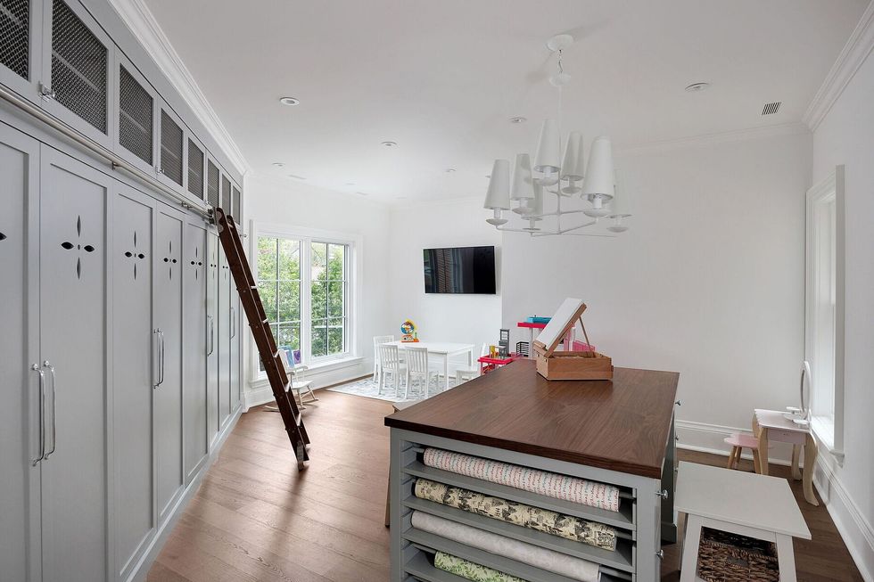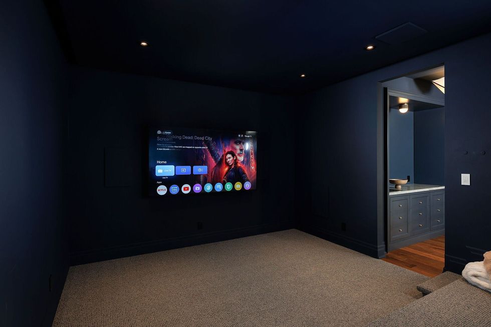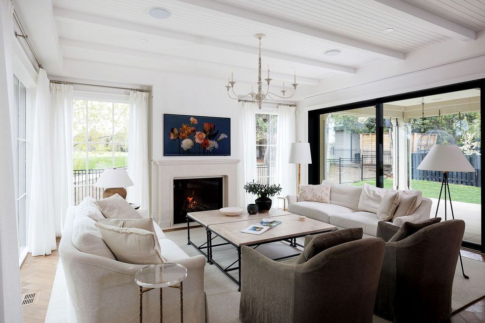 Nearly 9,000 sq. ft of total living space unfolds across three levels, crafted with purpose and styled with care by Olly and Em Interior Design. The main floor is anchored by a sweeping kitchen — the kind of space that makes a meal feel like a ritual. Featuring a gas range, Miele appliances, and honed quartzite counters, it’s tailor-made for entertainers. Nearby, elegant living areas are warmed by both gas and electric fireplaces, while a luxurious primary suite on this level offers a retreat-like experience.