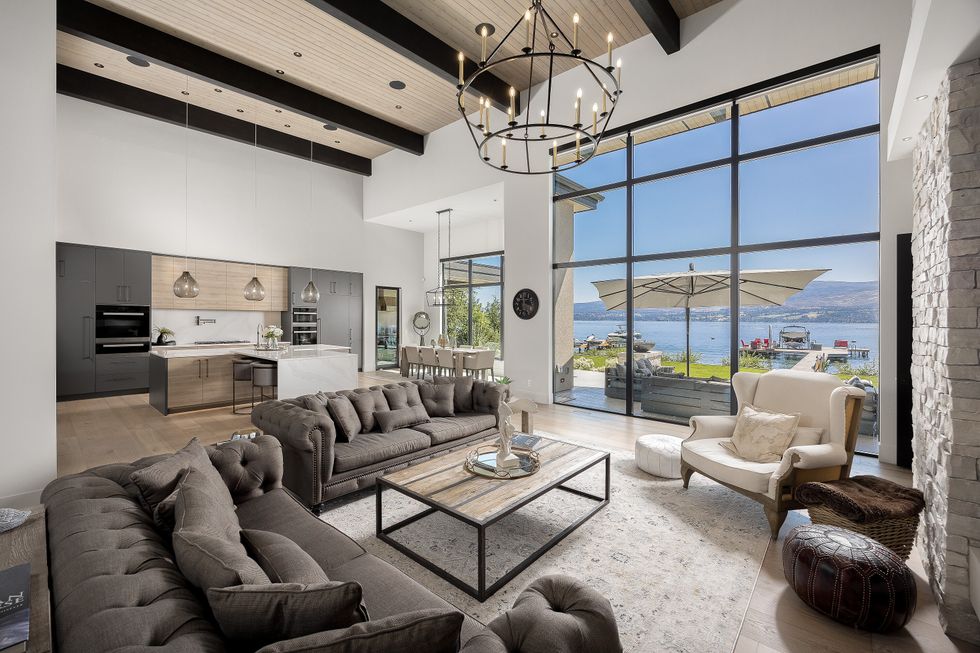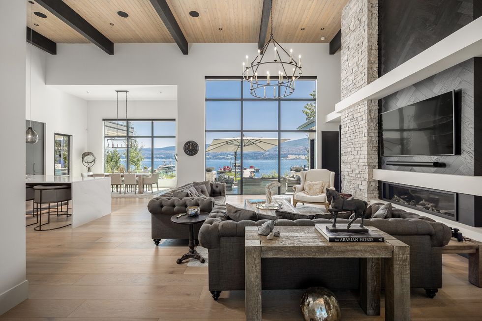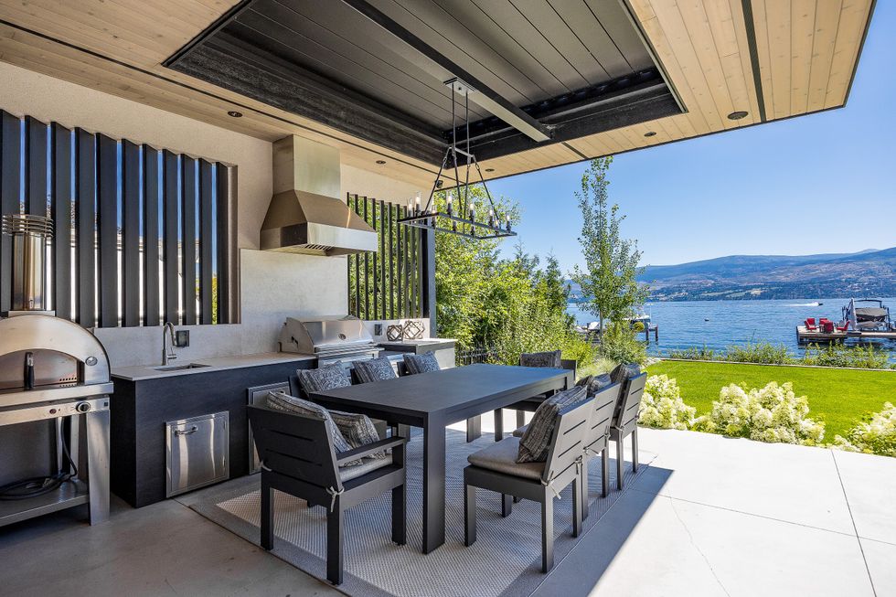 For car lovers, there’s even more to admire: the main garage includes a 9,000-pound automotive lift, while an additional single garage offers storage for motorcycles, paddleboards, or whatever other toys the Okanagan lifestyle inspires.