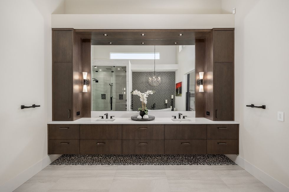 Meticulously planned and flawlessly executed, the single-storey home combines natural materials, contemporary detailing, and expansive outdoor living into a seamless whole. From the moment you step inside, a sense of volume and serenity takes over, with soaring 19-foot ceilings, vast walls of glass, and wide-plank, white-washed oak flooring grounding the interior.