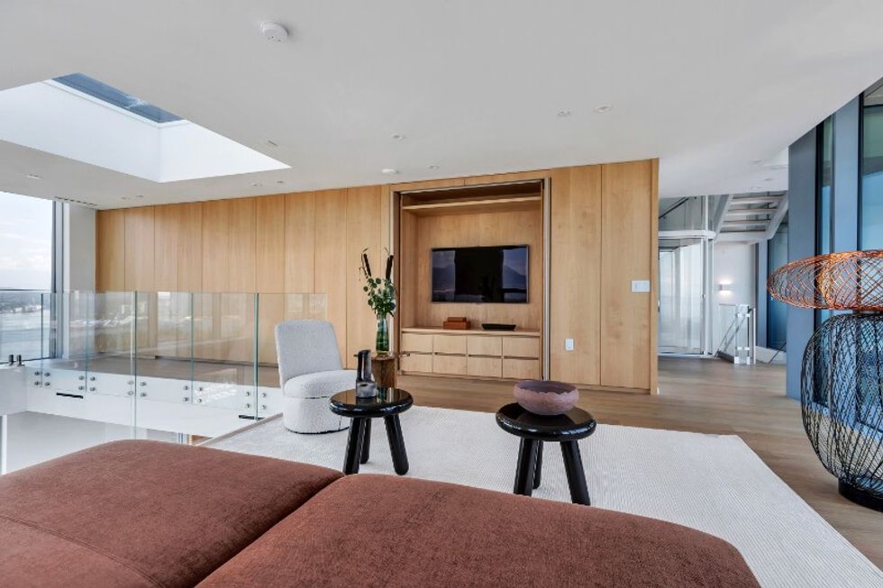 Completed in 2023, Penthouse 1 includes three bedrooms, five bathrooms, and 4,364 sq. ft of beautiful living space across three levels. This is without mentioning the 2,283 sq. ft of outdoor space, which is also spread out across all three levels. Additionally, Penthouse 1 also includes two double garages and access to an array of building amenities.