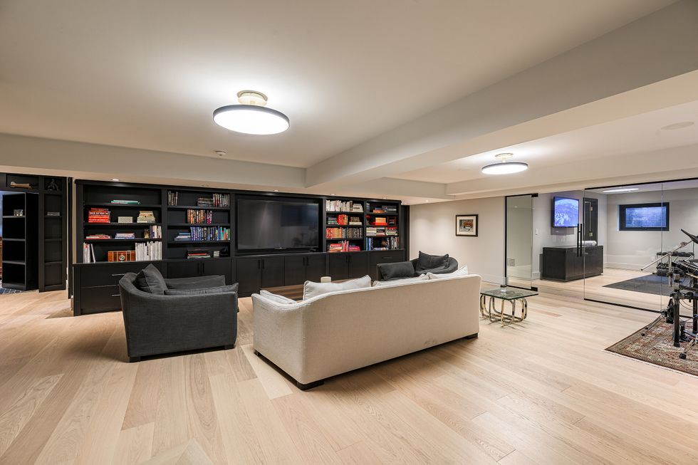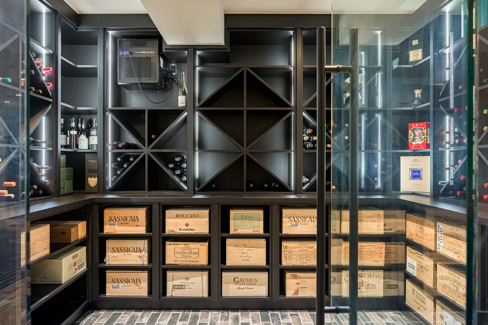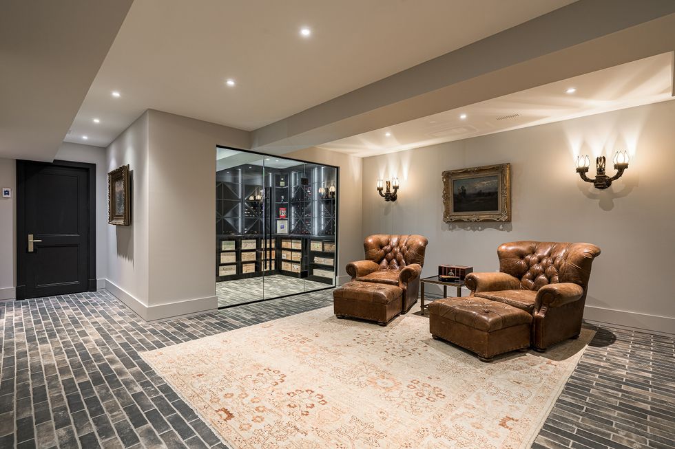 The lower level of the home is an entertainer's paradise, featuring an open media/music room, a wine cellar, a cigar/wine tasting area, and a fitness room complete with an aromatherapy steam shower.