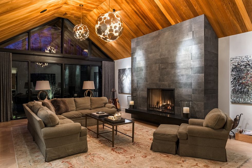 Undoubtedly the heart of the home, the "great room" is anchored by a wood-burning fireplace, while a vaulted ceiling soars above and white oak flooring runs underfoot. This space also offers direct access to the seasonal outdoor kitchen, making for top-tier summer entertaining.