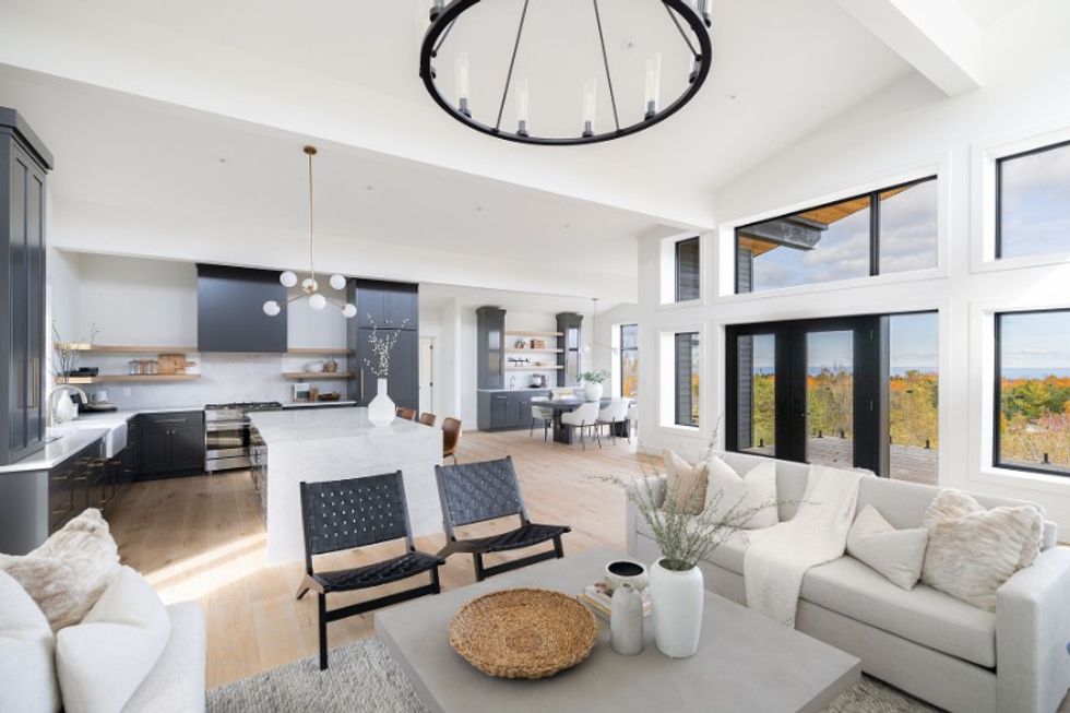 Nestled on over half an acre of escarpment land, the property boasts breathtaking panoramic views of Nottawasaga Valley and Georgian Bay, while the abode offers the perfect blend of comfort and style, space and seclusion.
