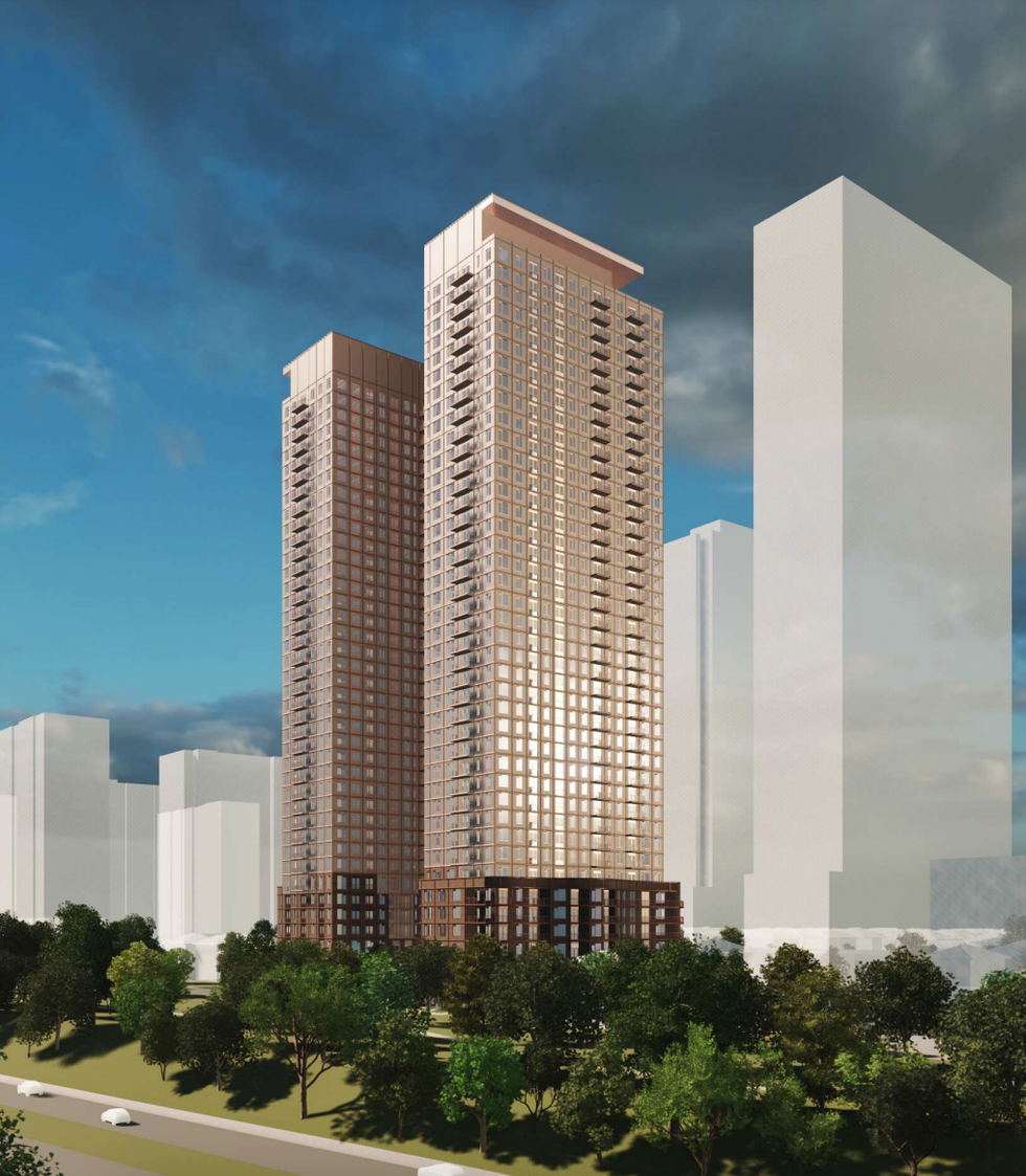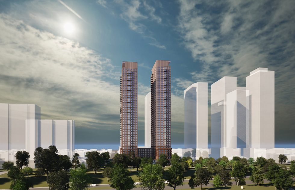 Toronto-based developer DiamondCorp recently submitted plans for a 40 and 38-storey residential development that could one day replace seven single-family homes in Yorkdale-Glen Park with over 900 condo units.