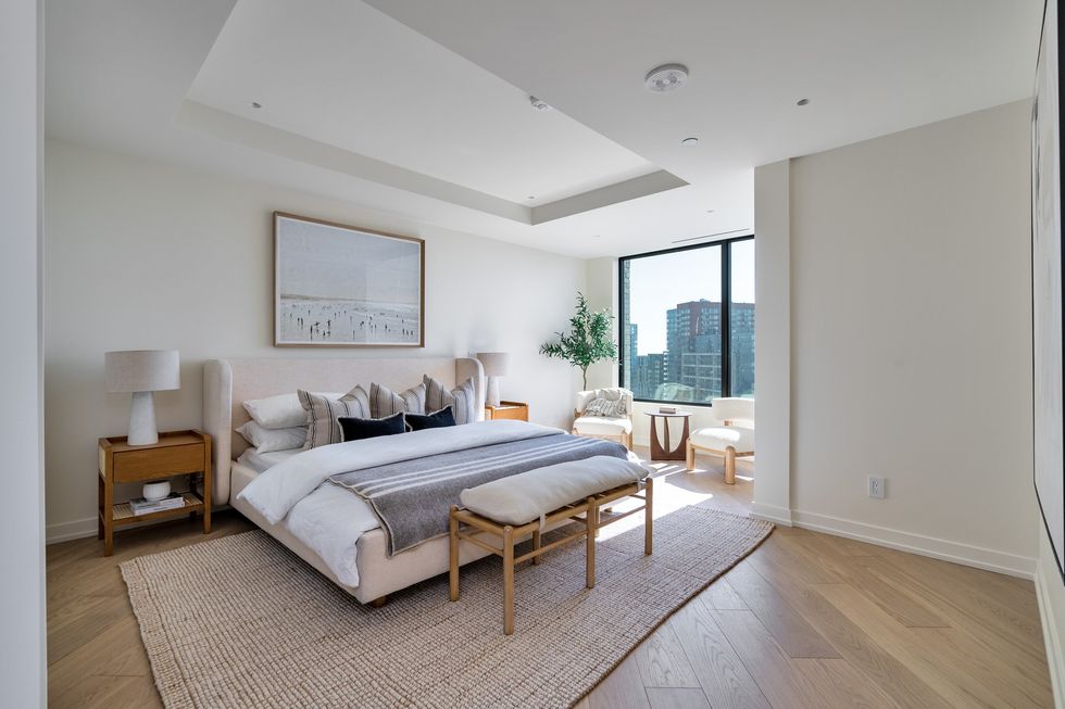 Or, for when you’d rather stick closer to home, the building boasts a range of luxury amenities, including a state-of-the-art gym and generous communal spaces where you can work, socialize, or simply relax with a good book.