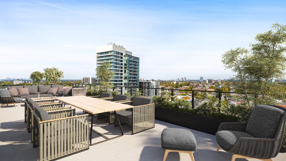 This two-bedroom, two-bathroom home for sale combines 2.5 units in Quadrangle Architects' new boutique development, “1181 Queen.” The result is an ultra-spacious dwelling that caters to a range of lifestyles, from cosmopolitan downsizers still seeking space to discerning young professionals looking for luxury.