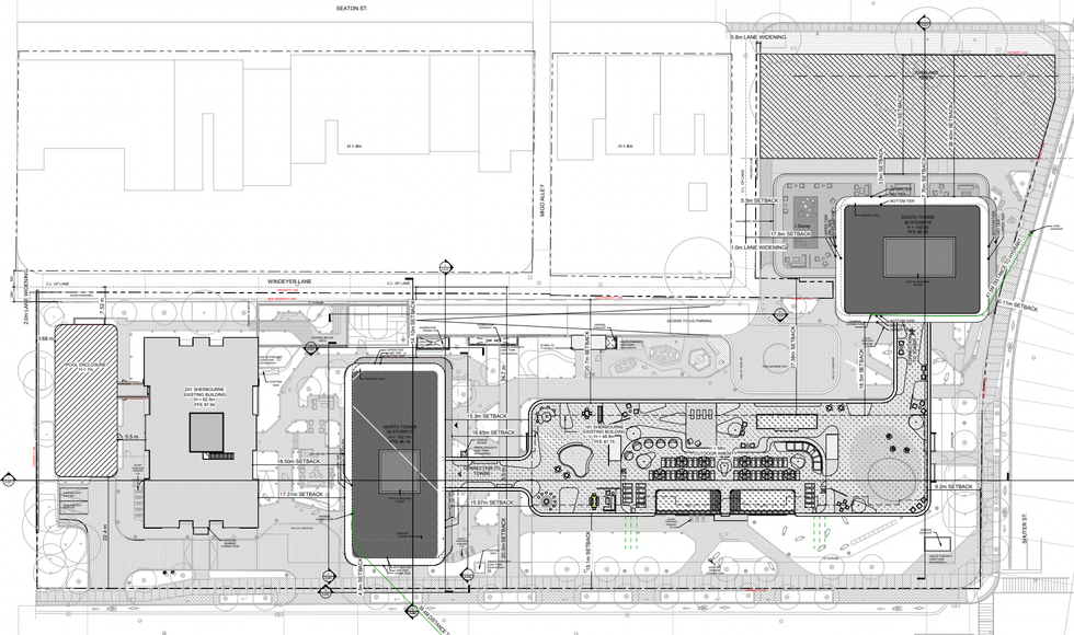 If approved, the infill buildings would be located at 191 and 201 Sherbourne Street, south of Dundas Street East and north of Shuter Street, on a 148,568-sq.-ft, L-shaped site on the east side of the street.