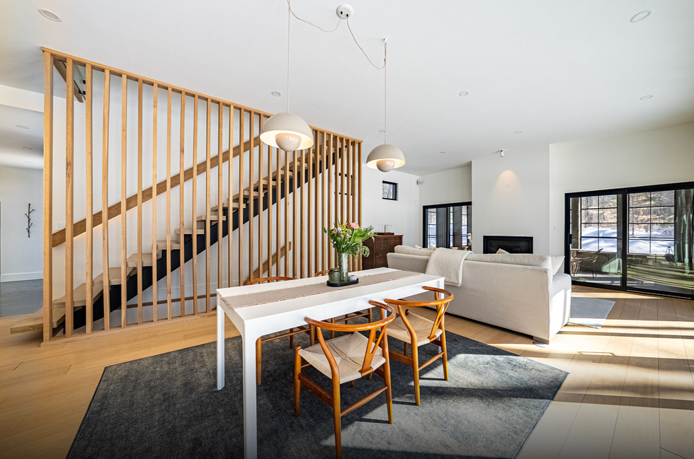 Inside, light streams through the home, unobstructed thanks to an open-concept layout that creates a spacious and welcoming atmosphere. Nordic-style touches, including a neutral colour scheme and simple, modern designs, also add to the home's elevated feel.