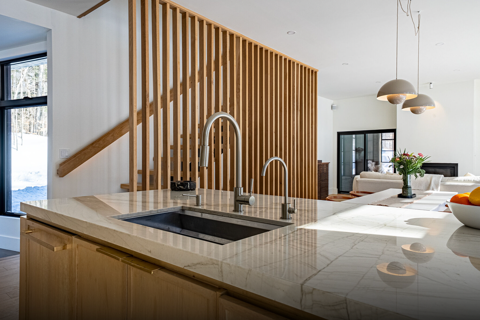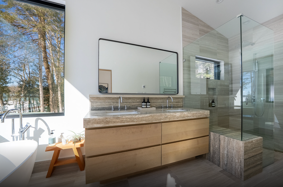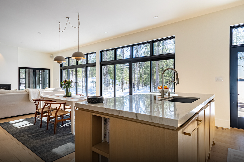 The Nordic-inspired cottage offers four bedrooms and three bathrooms across 4,300 sq. ft of luxury living space defined by open-concept layouts, soothing natural elements like stone and wood, and ample sunlight.