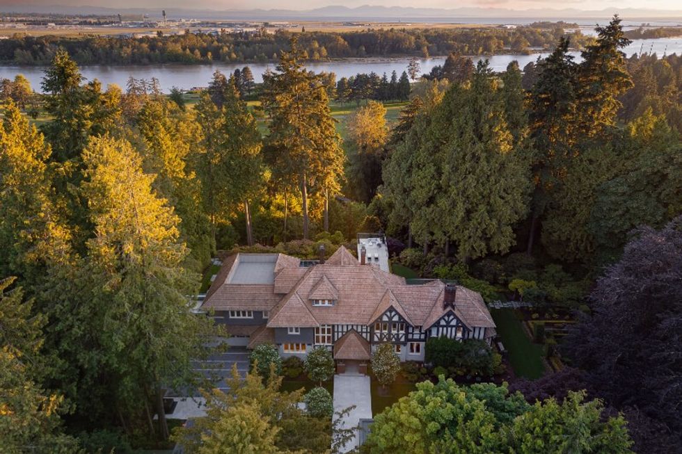 Known as the Gables Estate, the property sits at 2106 SW Marine Drive in the Marpole neighbourhood of Vancouver. Located a short distance from the Fraser River, the home is so close to the Marine Drive Golf Club that it's practically an extension of the (already sprawling) backyard.