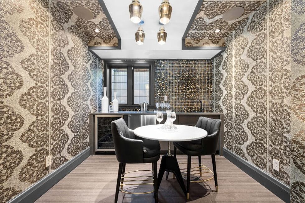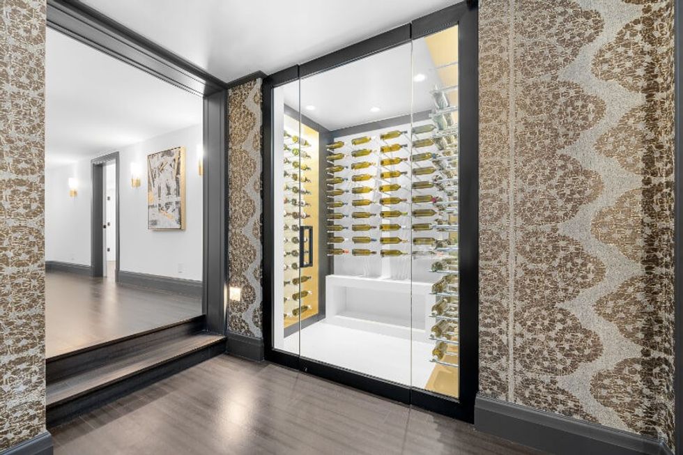 On the home's lower level, you'll find several additional flex rooms, an opulent wine cellar, and a state-of-the-art theatre room.