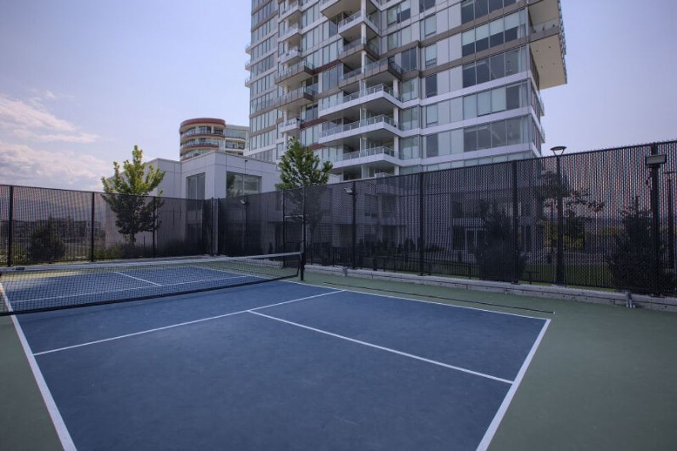 As a resident of One Water Street, you'll also have access to a variety of opulent amenities. On the fourth level of the building is an amenity space known as The Bench, which is home to three restaurants, a cafe, and a medi-spa. Other amenities include a business centre, pickleball court, swimming pool, and plenty of outdoor lounge space.