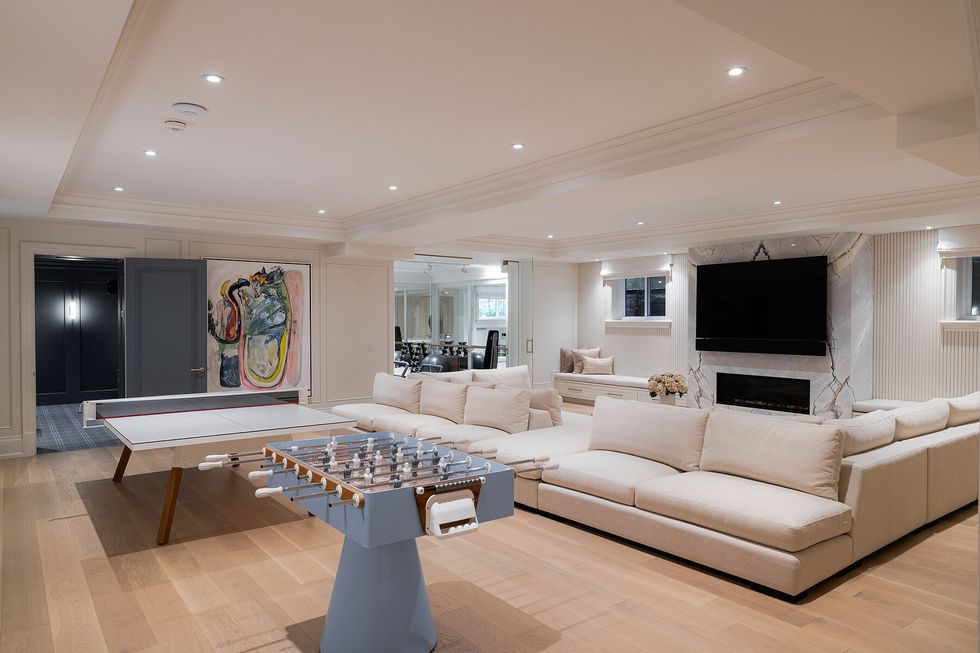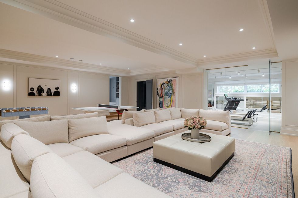 Downstairs, the home’s lower level takes leisure seriously: a rec room, games lounge, gym, sauna, and home theatre offer comfort and escape in equal measure.