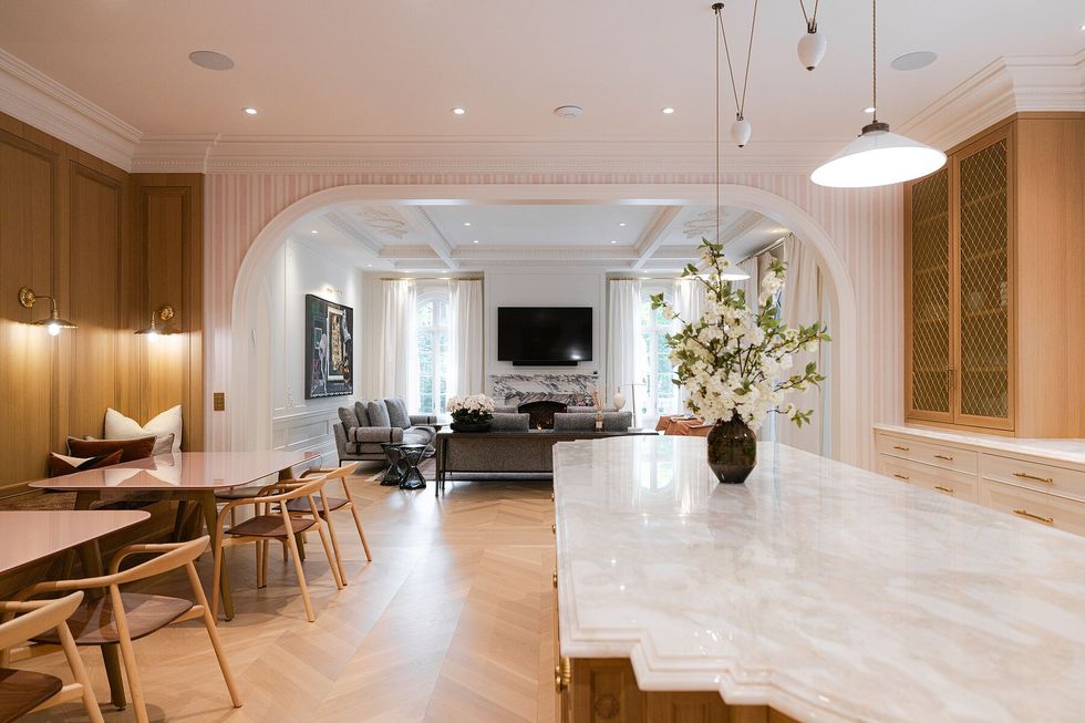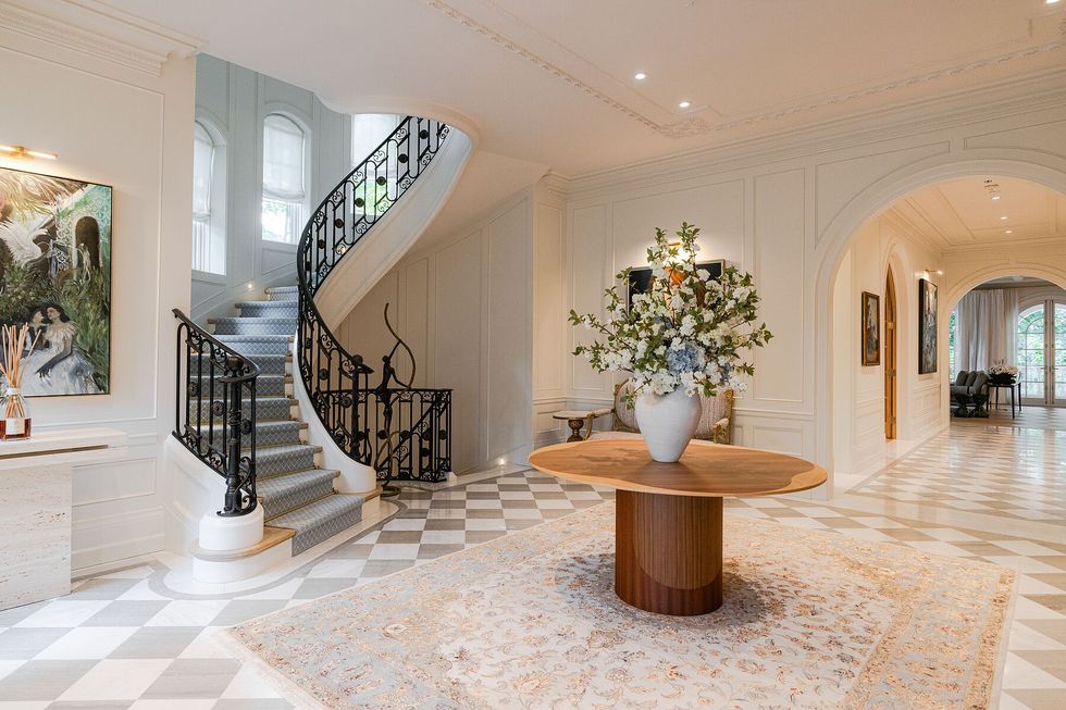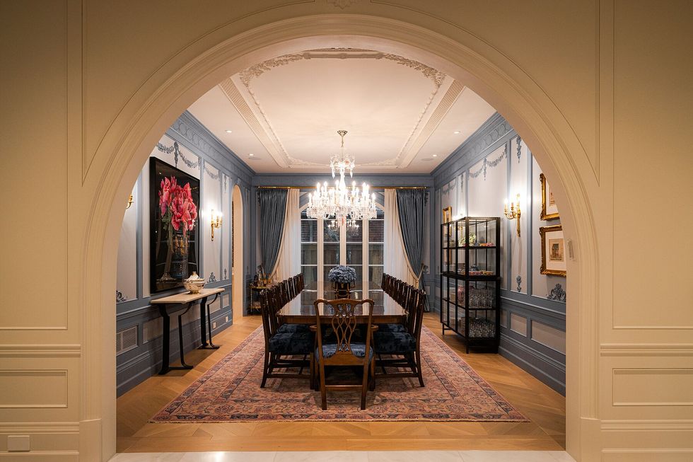 Tucked into one of Toronto’s most prestigious neighbourhoods, this custom-built estate is as much an ode to old-world craftsmanship as it is a contemporary showpiece. Conceived by a dream team of local luminaries — including JTF Homes, Lorne Rose Architecture, and interior designer Dvira Ovadia — the home is a study in elegance, symmetry, and thoughtful consideration.