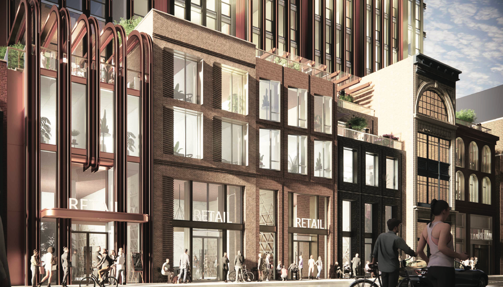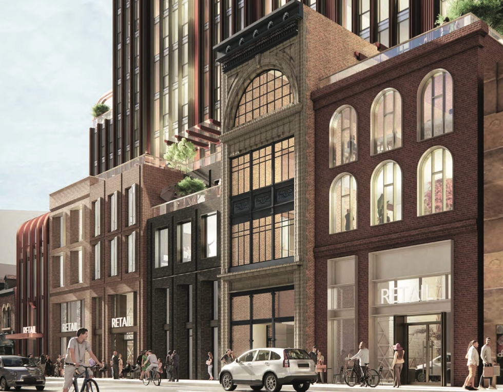 As 241 Yonge Street is listed on the City’s Heritage Register, the proposed redevelopment plans call for the retention and incorporation of the the existing facade into the new design. More specifically, the west elevation of 241 Yonge would be retained in an effort to conserve “prominent architectural elements,” according to the planning report. It further notes that “lost architectural elements, including the cast-iron storefront and signage band, will be restored.”