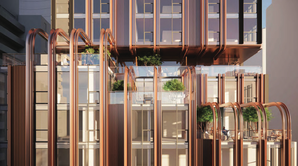 Hariri Pontarini Architects is to credit for the proposed design of the building, and renderings from the firm show the tower with a four-storey podium “oriented in the east-west direction.” The entirety of the building is depicted as sleek and glassy, and the tower top in particular is shown with a slope that lends asymmetry to the building profile.