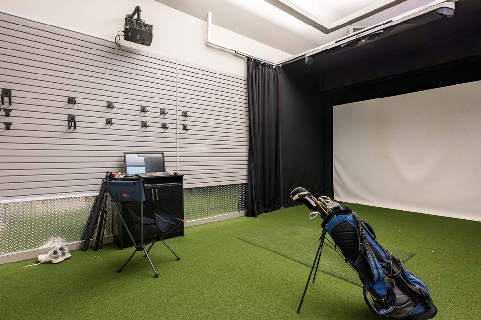 I think it's safe to say our favourite thing about this home is the sheer amount of amenities it offers. It's got your essentials: a pool, theatre, and golf simulator, but also a number of features that simply go above and beyond. To name a few? The car elevator, pet wash station, heated floors, and Creston home automation system.