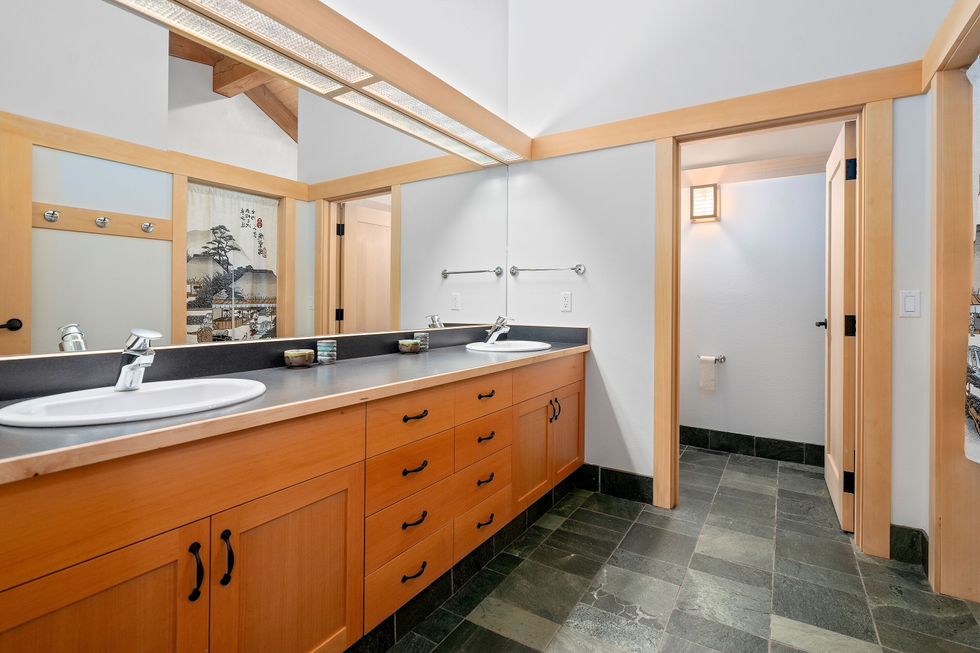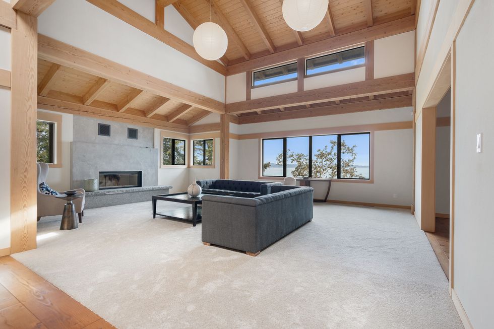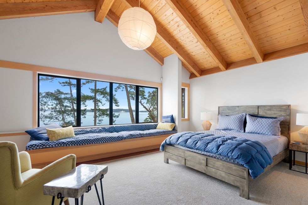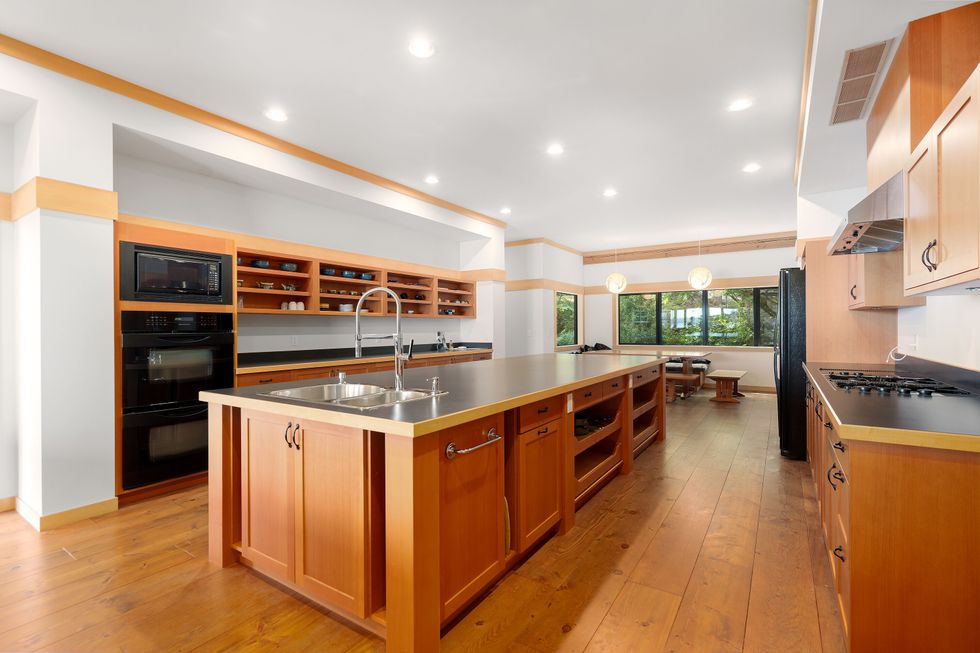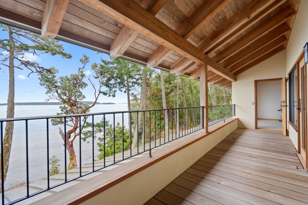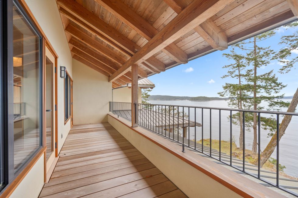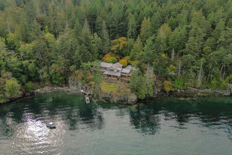 Built by esteemed Salt Spring Islander Robert Langevin, the estate — located at 250 Holmes Road — is a contemporary timber-frame masterpiece, incorporating rich natural woods throughout. Reclaimed wide-plank Douglas Fir floors and natural slate — complemented by radiant heating — set the tone for warmth and refinement, while custom yellow cedar millwork brings a sense of artisanal craftsmanship to every corner.