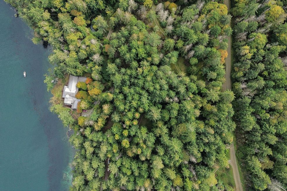 Towering trees line private walking trails, reinforcing the property’s sense of seclusion and tranquility.