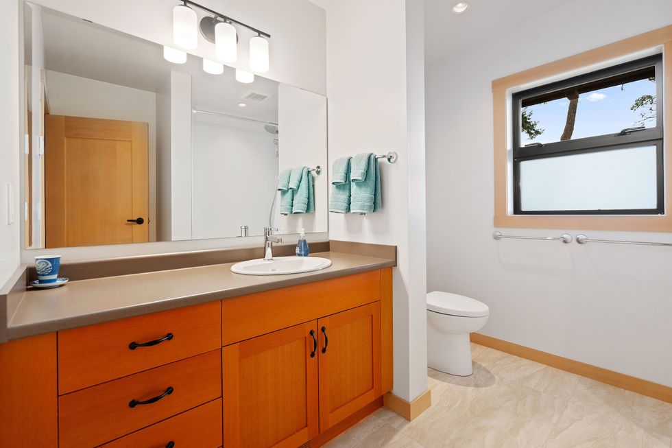 Inside, the home is designed for both comfort and ultimate class. The chef’s kitchen is a standout, featuring shaker-style vertical grain Douglas Fir cabinetry in a thoughtful nod to the surrounding old-growth forests. Each of the four bedrooms is generously sized, with walk-in closets and ensuite bathrooms, creating a true sanctuary for everyone at home.