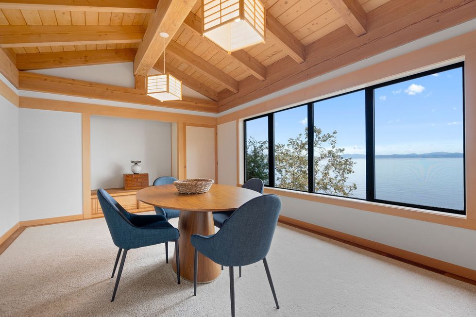 Beyond the home’s walls, nature takes centre stage. Sweeping views of Puget Sound, the Gulf Islands, and Mount Baker provide an ever-changing canvas of breathtaking sunrises, while Japanese gardens, a serene gazebo, and a spring-fed pond add an undeniable sense of peace.
