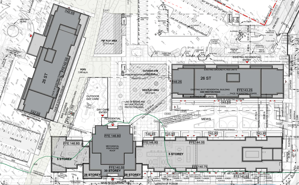 If approved, the development would join two existing 26-storey residential towers containing 517 rental units. Located at 3400 Weston Road and 2405 Finch Avenue West, the site touts close proximity to the Finch and Highway 400 interchange, a number of existing surface transit routes, and the soon-to-open Emery Station on the Finch West LRT line.