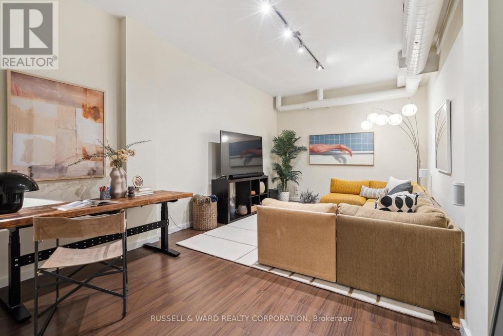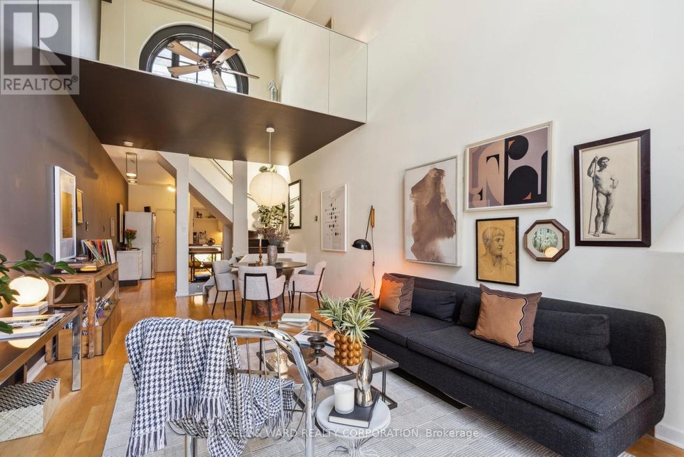 Steps from Toronto’s vibrant Little Italy neighbourhood, Unit 103 in The Movie House Lofts is a charming space showcasing its heritage roots, while embracing a modern flair. Located at at 394 Euclid Avenue and listed for $1,025,000, the (more than) 1,200-sq.-ft loft is within a century old red-brick building, once a Protestant fraternal clubhouse and, as mentioned, theatre.