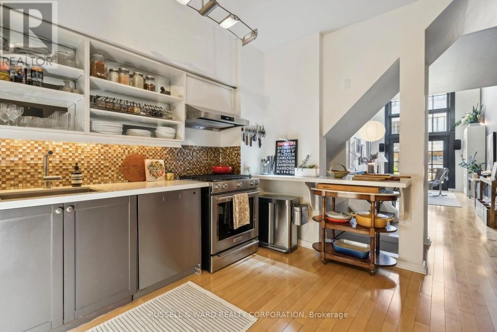Spread over three floors, the unit is a 1+1 bedroom with two baths. It’s ideal for the young entrepreneur looking to live in an iconic Toronto neighbourhood close to the downtown core or a creative who wants to be inspired.