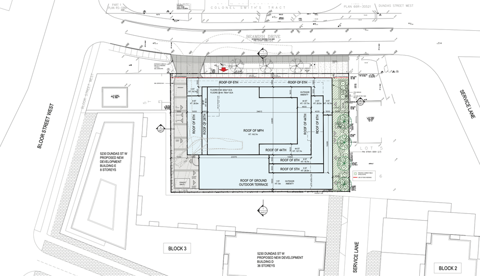 Just over a month after announcing they had closed on the sale of the site, investment manager Fengate Asset Management and development and construction company High Rise Group have advanced plans to bring a 44-storey purpose-built rental to 4, 6, 8, and 10 Beamish Drive. The site in Etobicoke has already been rezoned for the proposed tower, and now the developer is seeking Site Plan Approval, which gives the City a chance to review the technical design and functional details of the project.