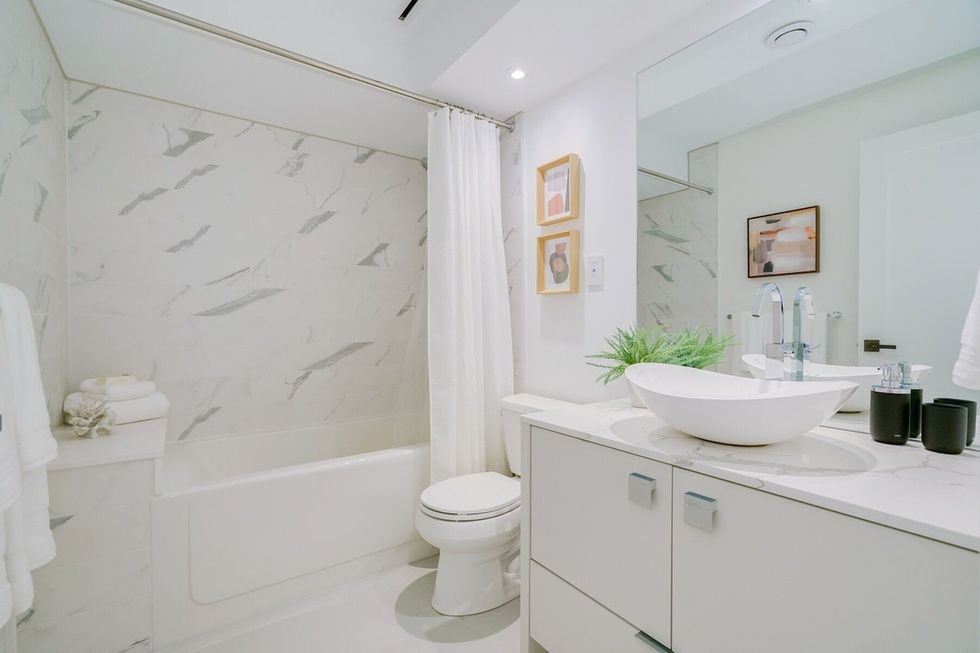 Upstairs, a second primary bedroom (our favourite of all five) boasts a lavish five-piece ensuite, complete with a generously sized soaker tub for ultimate relaxation, and an expansive wall of closets to accommodate extensive wardrobes. As an added bonus, this primary bedroom offers direct access to an inviting rooftop deck, providing a seamless transition between indoor and outdoor living. This generously sized third floor also features an additional bedroom with a wall of custom closets.