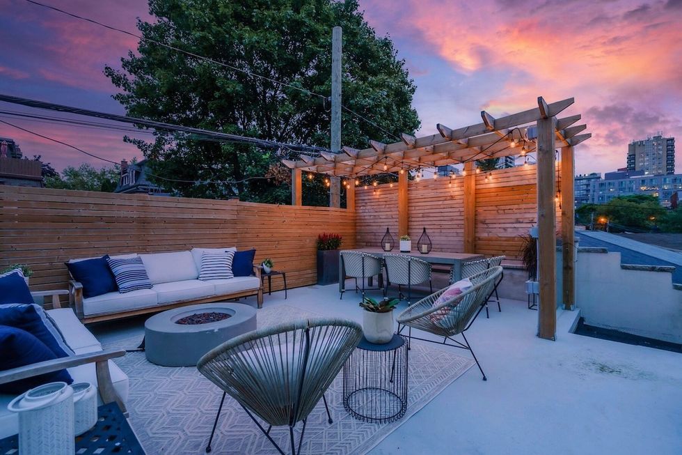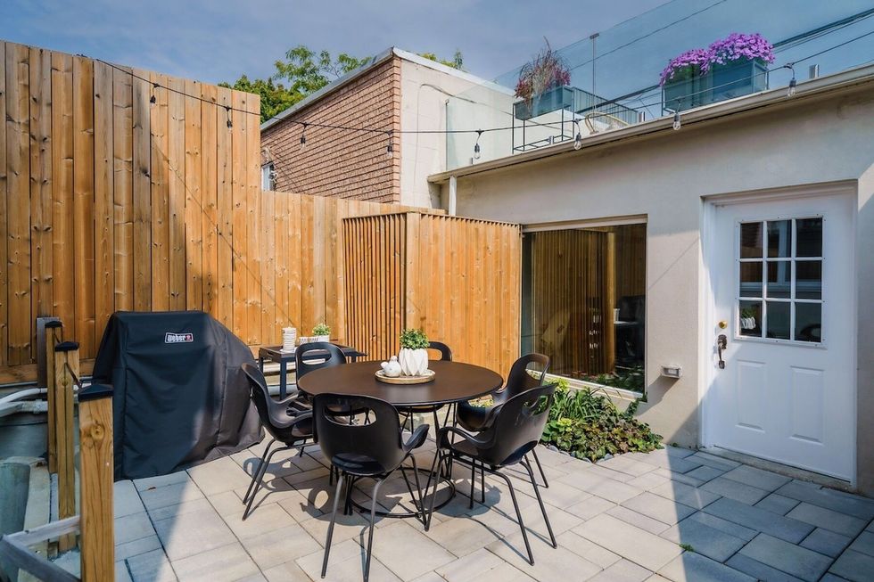 The trees that surround the home – perhaps best enjoyed from the bedroom rooftop deck, the rooftop terrace on the garage, the walk-out deck off the basement, or the peaceful backyard – offer a lovely contrast to the bustle of restaurants, bars, and shops just a short walk away.