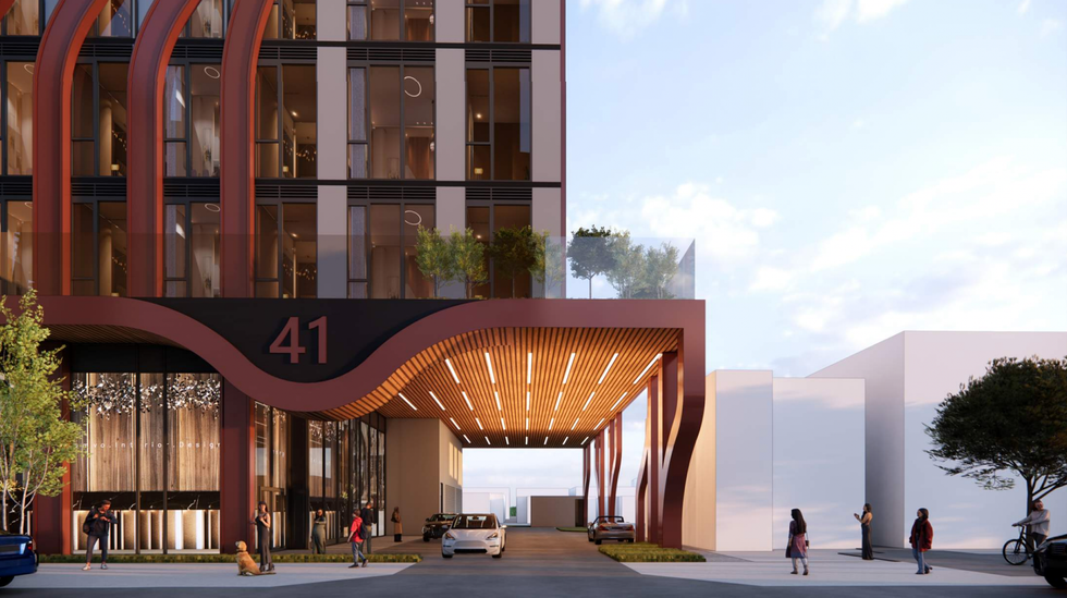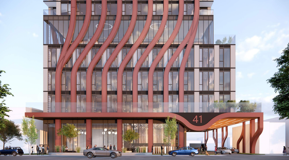 A series of setbacks add further dimension and allow for various terraces and green roofs moving up the building. At grade, the residential lobby would front onto Berwick Avenue where the main entrance would be sheltered by a covered pick up/drop off lane. Inside, the lobby would be accompanied by a 1,754-sq.-ft indoor amenity area, plus a pet wash station.