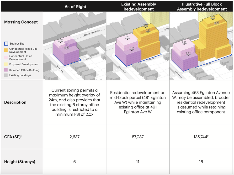 “Additionally, there are several development applications containing a variety of built form in the neighbourhood. Two development applications in the immediate area include a 19-storey residential building at 444-446 Eglinton Avenue West and a 10-storey residential building at 346-356 Eglinton Avenue West. Active condominium developments have achieved 76% in sales at an average price of $1,429 psf.”