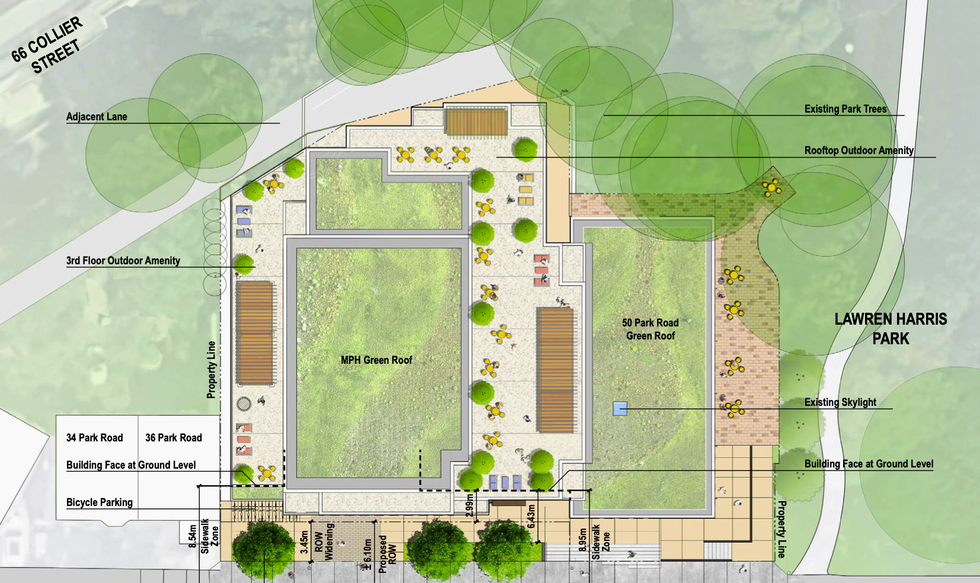 “The new construction maintains a modernist architectural expression along Park Road and generally reflects the existing condition, consisting of a modern tower form that meets the ground; however, the lower levels have been designed and articulated to create visual breaks in the massing that respond to the existing heritage building and the scale of Park Road,” according to the planning report.