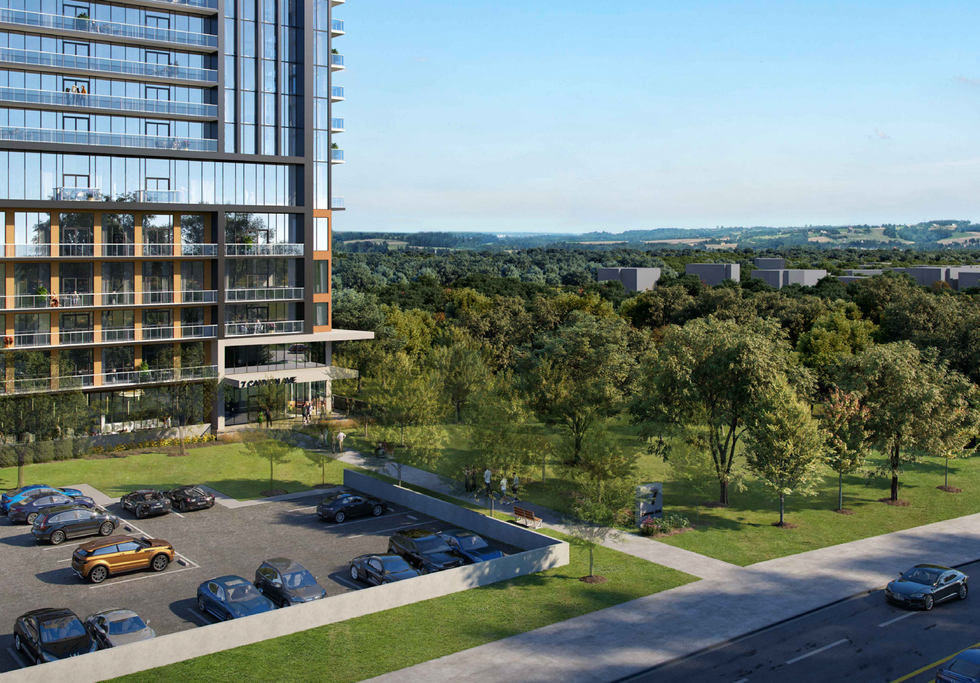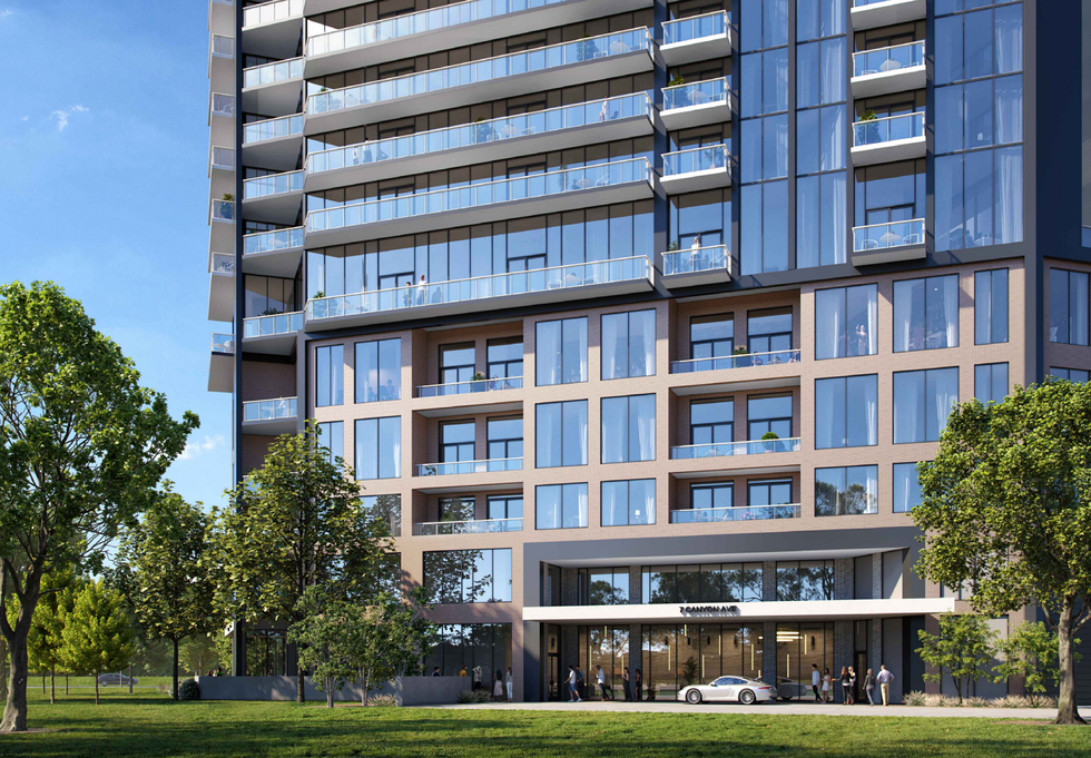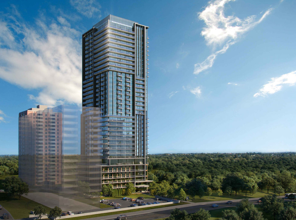 At 35-storeys, the proposed development would be one of the tallest in the surrounding area and is currently the tallest project proposed for some distance. Renderings from Graziani + Corazza Architects show the building with its five-storey podium and unique exterior design defined by contrasting vertical and horizontal elements that create a checkerboard effect.