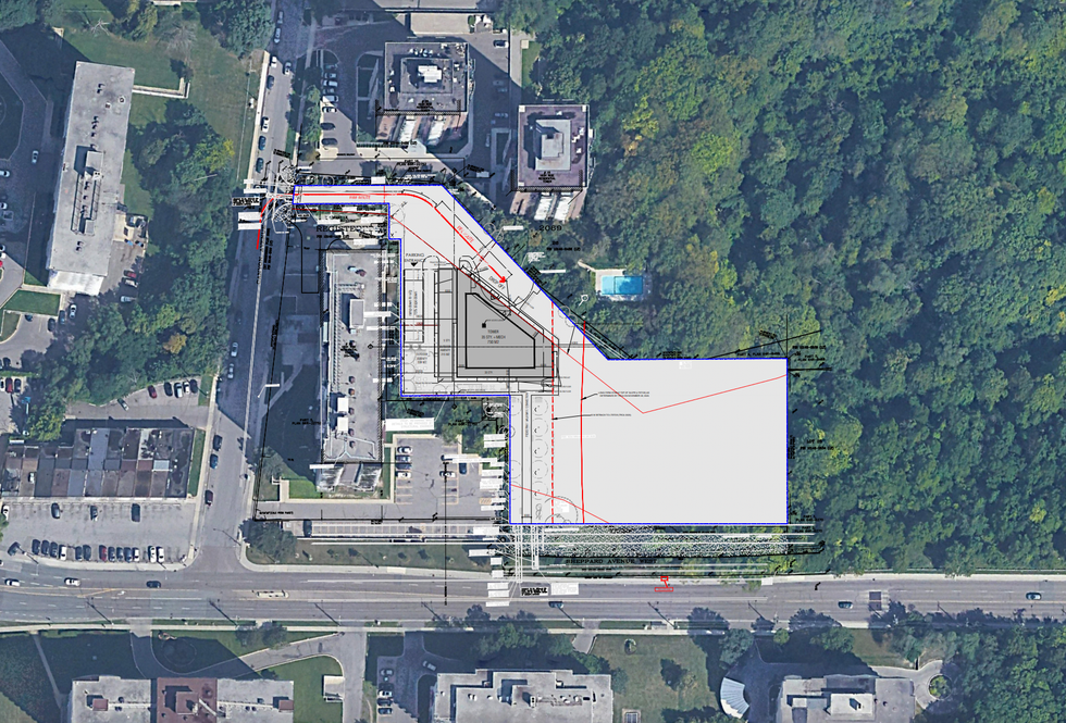 As a large portion on the eastern end of the site is located within the regulated area of the Toronto and Region Conservation Authority (TRCA) and part of the City of Toronto Natural Heritage System (NHS), plans include a Ravine Stewardship Plan which lays out steps to "protect and enhance the ecological quality of the ravine environment." This includes disposing of garbage that has collected in the ravine, restricting public access to the area, and improving the ecology of the ravine area though things like soil remediation, invasive species removal, and native tree plantings.